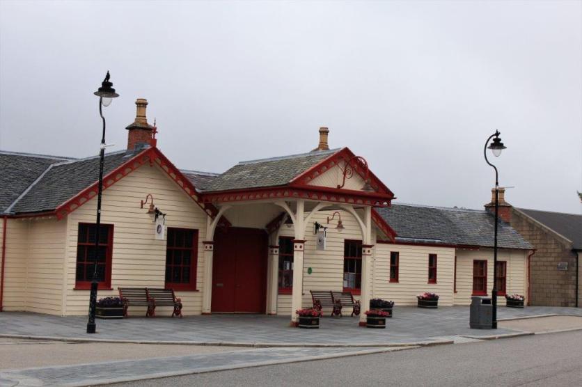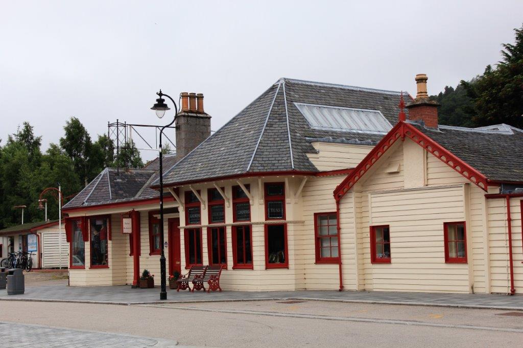 Our objective of the day was Balmoral Castle, the summer residence of the royal family. Before we left the town of Ballater, where we had spent the night, we drove over to the train station. The Royal Train Station at Ballater was the end of the journey from London when the royals went north for the summer. The station is now the Tourist Information Center and was closed until 10 am. We had left our B & B just after nine and felt we didn’t want to wait an hour to go inside, so we just took a few photos and headed west to Balmoral.