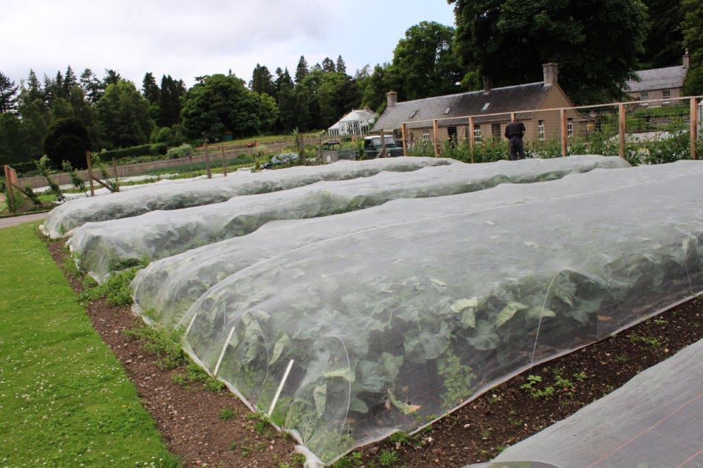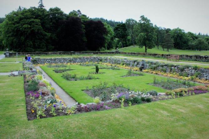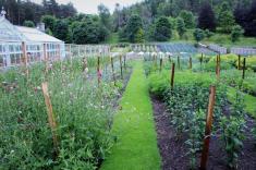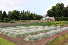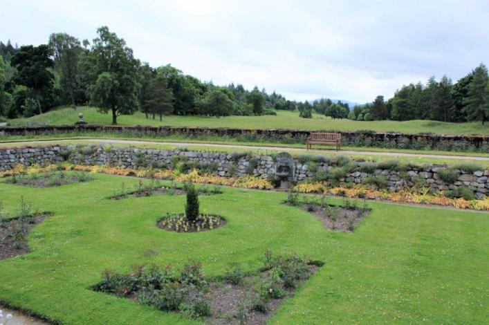 The formal gardens are at the end of the lawn and the road continues past the vegetable and flower gardens. All the flowers for the arrangements in the castle are grown on site and the majority of the vegetables and fruit used by the staff and family is also grown on the estate.