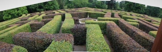 One of the things that the gardens at Scone Palace is famous for is the Star Maze. This gorgeous maze was designed by international maze designer Adrian Fisher. (Who knew that could be a career?) The large maze is made of 2,000 copper and green beech trees to reflect the Earl of Mansfield’s family tartan. The five-point star is part of the family emblem. I copied the photo below from an internet site to show the size of the thing. There is a nice viewing platform where you stand above the maze and watch people try find their way to the center.