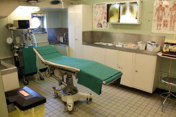 Since the ship was built less than 10 years after the end of WWII, and that horrible time was still fresh in people’s minds, the yacht was designed so it could be converted to a hospital ship if necessary. The bow was structurally strengthened to allow for helicopter landings. This, though is just the medic’s room.