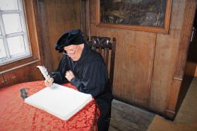He was licensed in the Church of England and rose through the ecclesiastical ranks to become royal chaplain to King Edward VI of England. After Mary Tudor ascended the throne and re-established Roman Catholicism he was forced to resign and leave the country. In Geneva he met John Calvin, another reformist from whom he learned much about Reformed Theology and Presbyterian polity. Upon his return to Scotland he led the Protestant Reformation. Knox helped write the new confession of faith and the ecclesiastical order for the newly created reformed church, the Kirk. He continued to serve as the religious leader of the Protestants throughout Mary’s reign and continued to preach until his death in 1572. He was 58 or 59 years old.