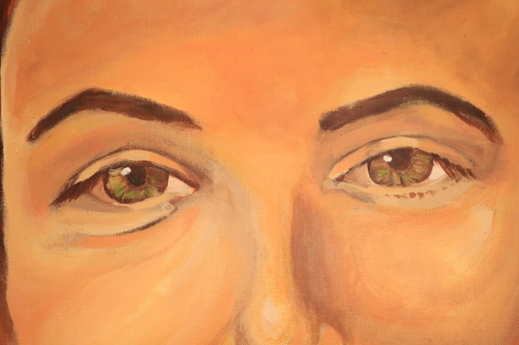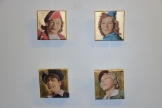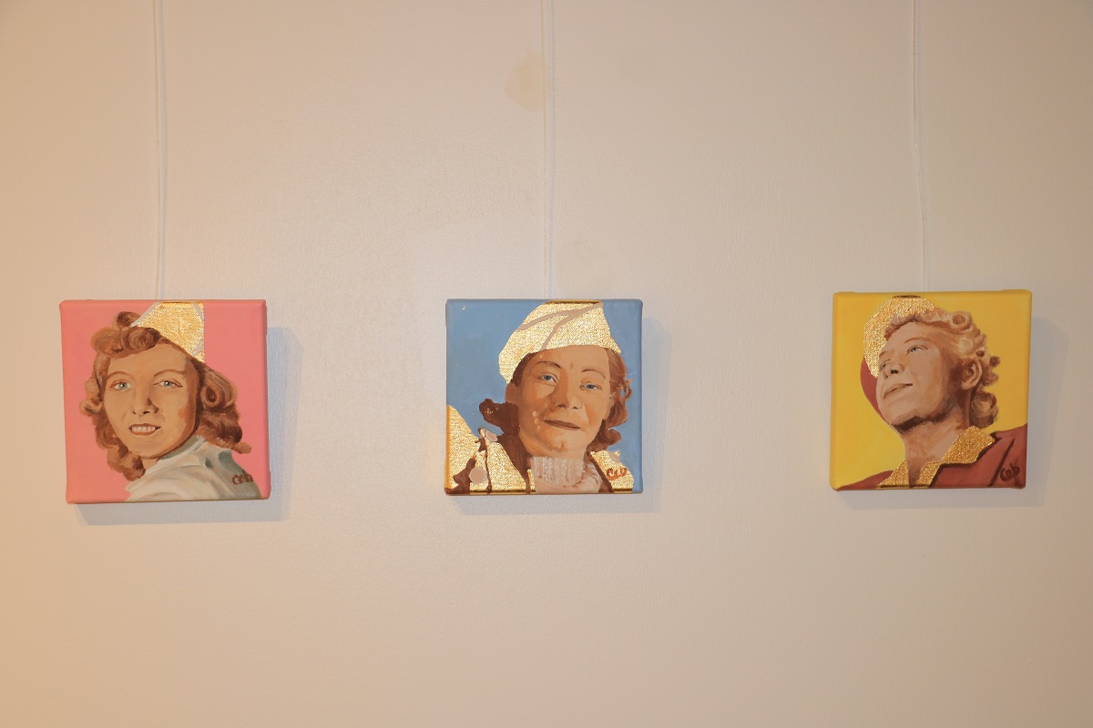 Even though the photographs that inspired the paintings were black and white Carrie selected colours for clothing, hair, skin tones and eyes for each woman. She made several studies of each woman in different sizes and with differing backgrounds or gold leaf accents.
