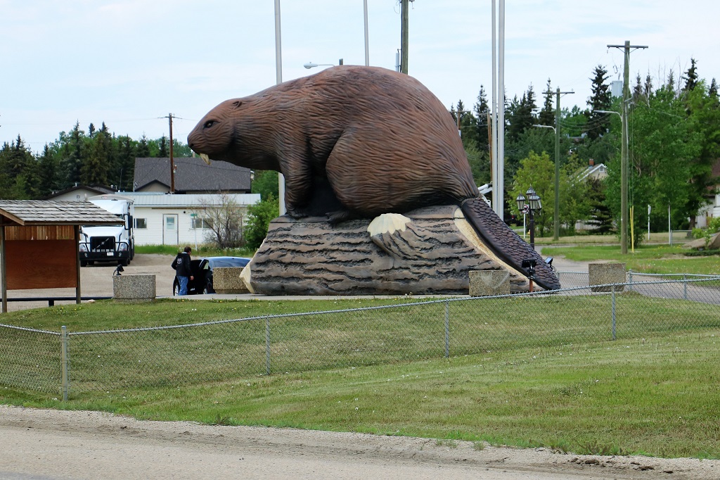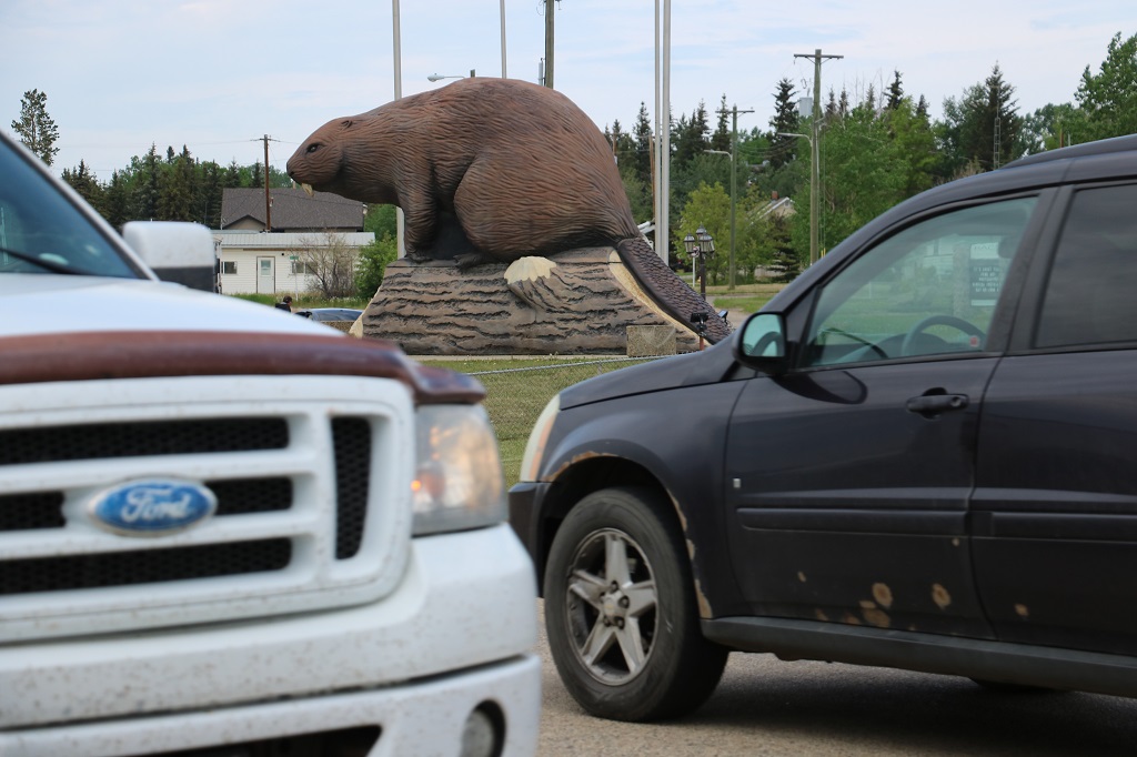 The community of Beaver Lodge has a large beaver at the entrance to town. John had pulled over to the side of the road to look back and take a picture of it. He also captured the one below, which surprisingly is all in focus with two moving vehicles.