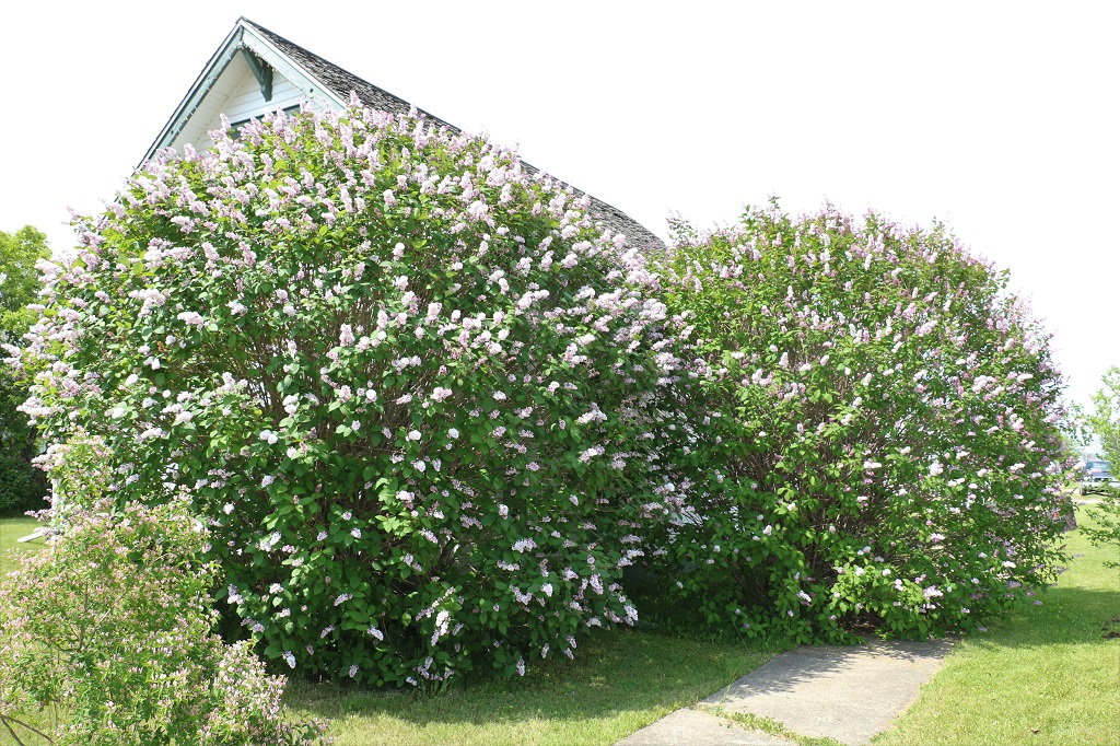 There were three of these huge lilac bushes at the Rectory. As you can see one of them completely covers the sidewalk. The blossoms were just coming out and the perfume was lovely. The bees were happy too. I do not know which variation of lilac they are. They are more delicate and a much softer colour than at home.
