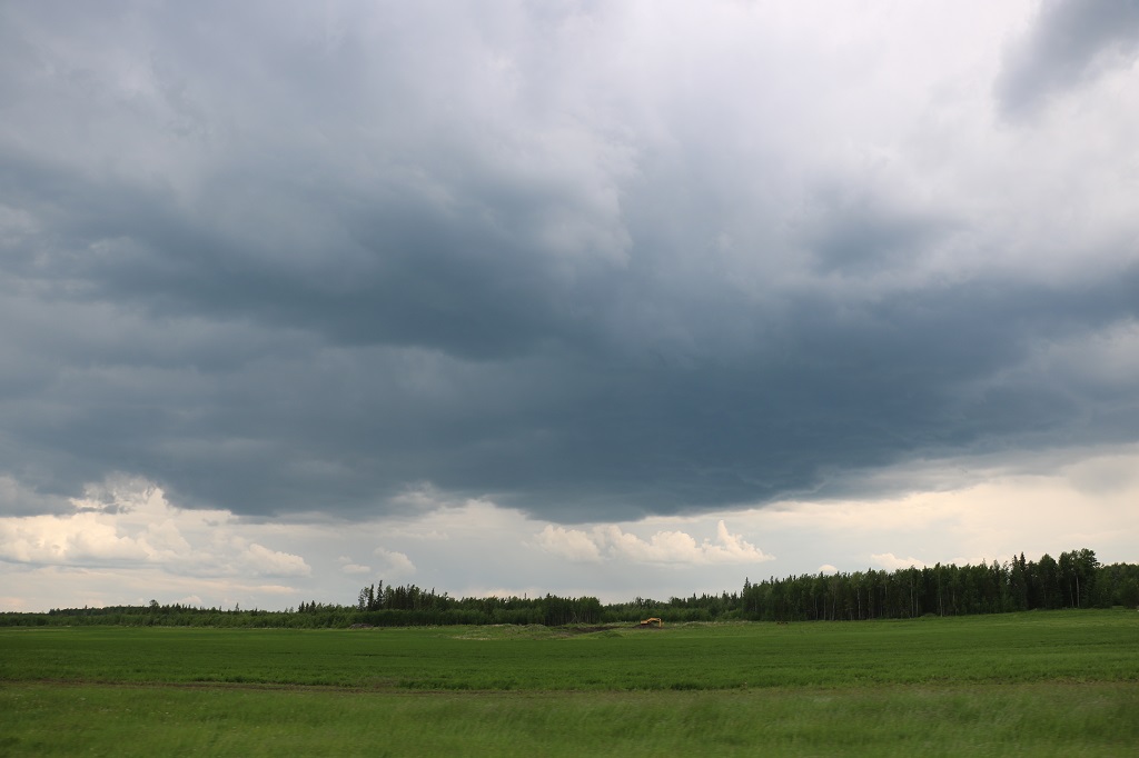 About 25 or so kilometers from Slave Lake a big storm cloud settled overhead and washed the truck for us. The rain only lasted a few minutes and then the cloud moved on.