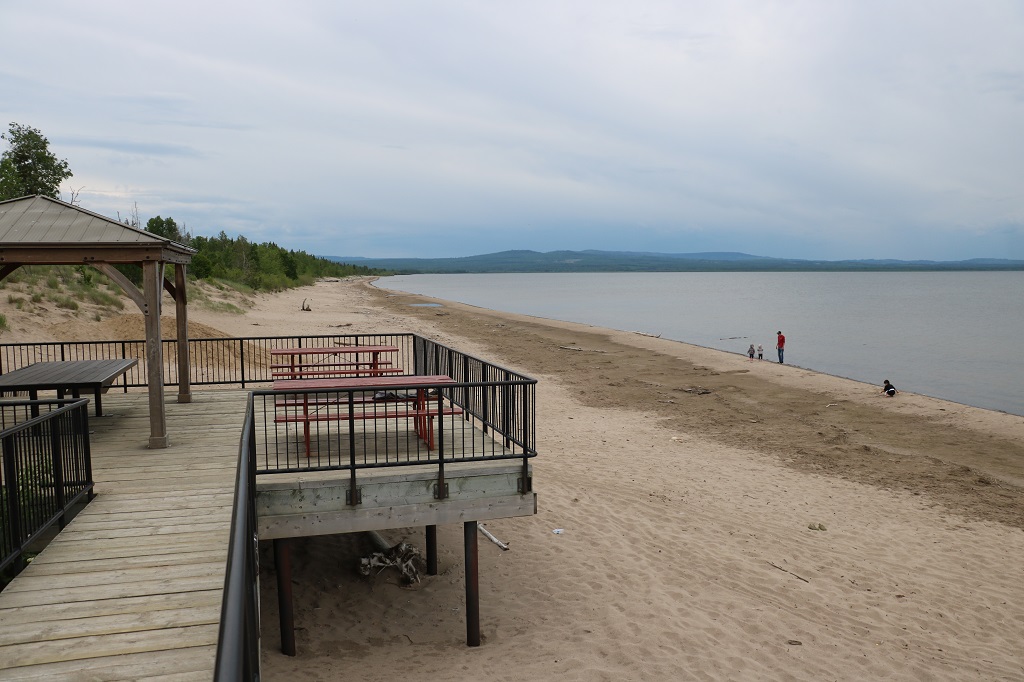 We arrived in Slave Lake about 5:30, checked into our hotel, went for dinner, then drove out to Devonshire Beach to find an Earthcache. Devonshire Beach is found at the south end of Lesser Slave Lake Provincial Park and is recognized as one of the 10 top beaches in Canada. It is a 1.5 kilometre stretch of natural and groomed sandy beach which is part of a 1500-year-old sand dune complex. Devonshire Beach is a unique environment in Alberta and the beach is an important habitat for rare plants such as the sitka willow, which is adapted specifically for this sandy lakeshore environment.