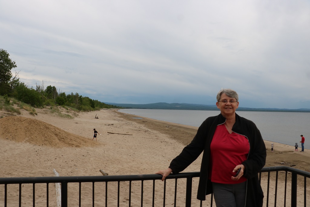 Owners of Earthcaches like to see photos of you to prove you were there as there is no log paper to sign with this type of geocahe. The coordinates of an Earthcache will take you to a place of geological or natural interest. The description of the cache explains the features of the place where you are standing or that you can see. To claim the ‘find’ you need to answer questions that are related to what you see and what the information describes. We have stopped at a lot of very interesting places to log Earthcache finds. John took this photo of me at Devonshire Beach to post with my ‘found’ entry about the dunes.