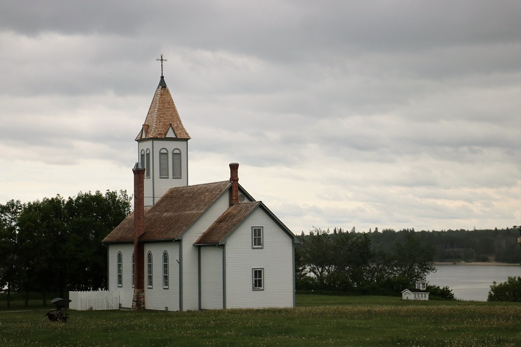 Just before we reached Lac la Biche we turned off Highway 2 and drove 4 km to the Lac La Biche Mission Heritage Site. Even though the signs said they were open and that we should ring the bell to have someone come downstairs no one arrived. We took a couple of photos and as we were heading to the truck to continue our journey we saw a large group of children going from one building to another. All the staff must have been escorting the class on a tour.