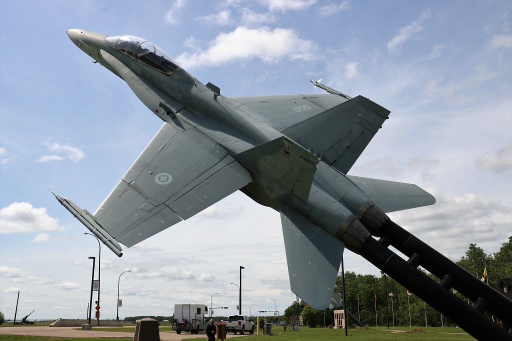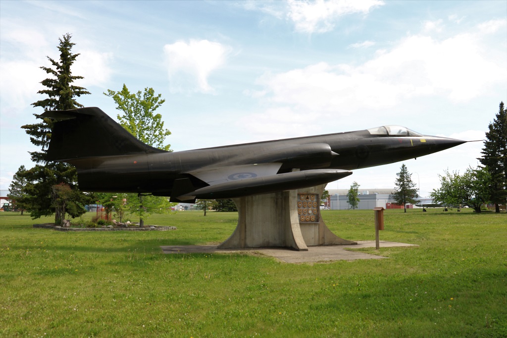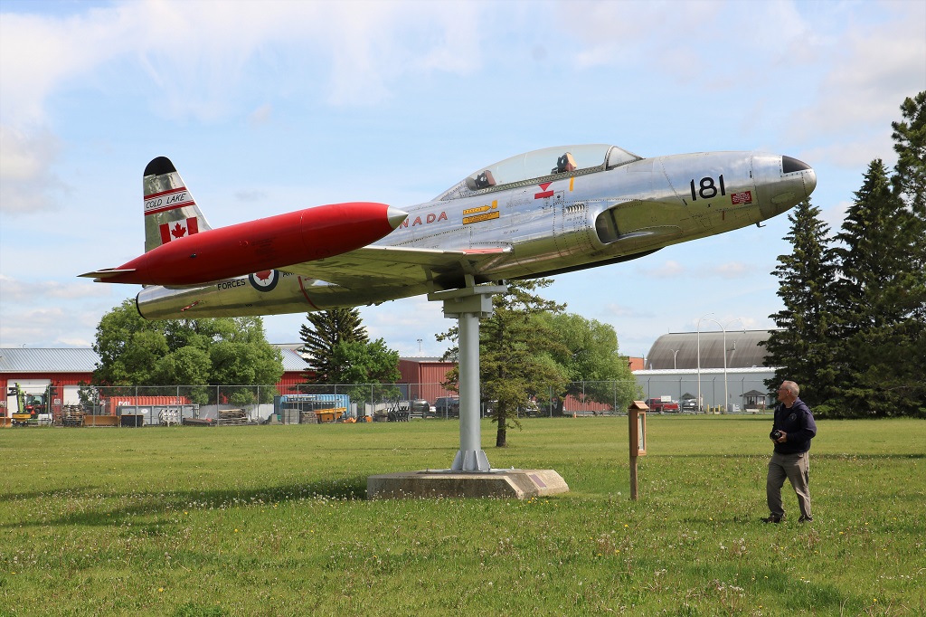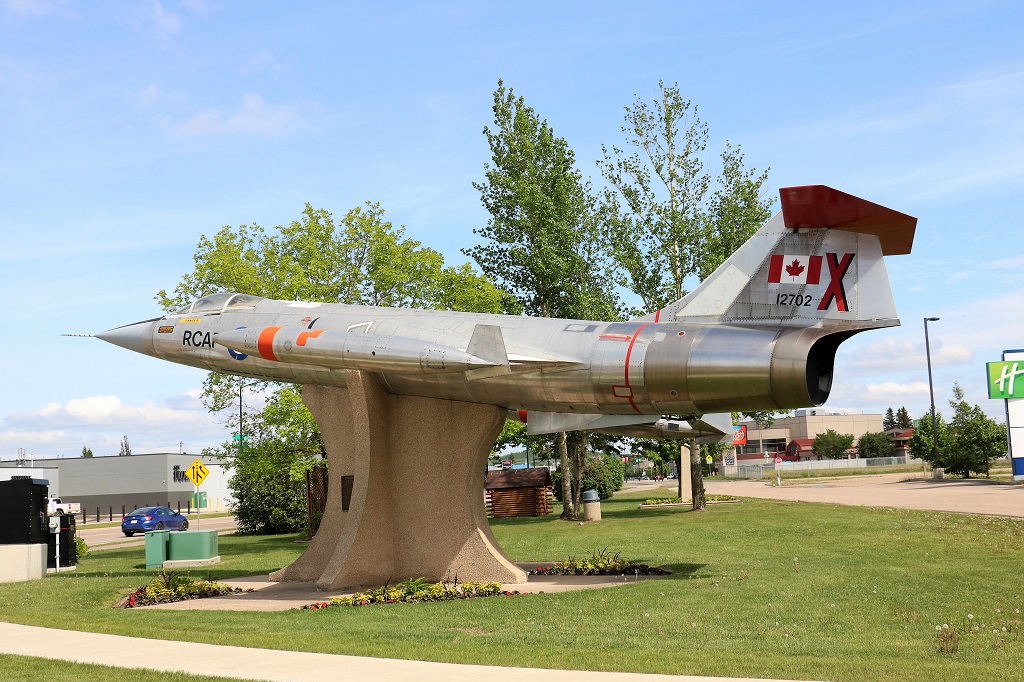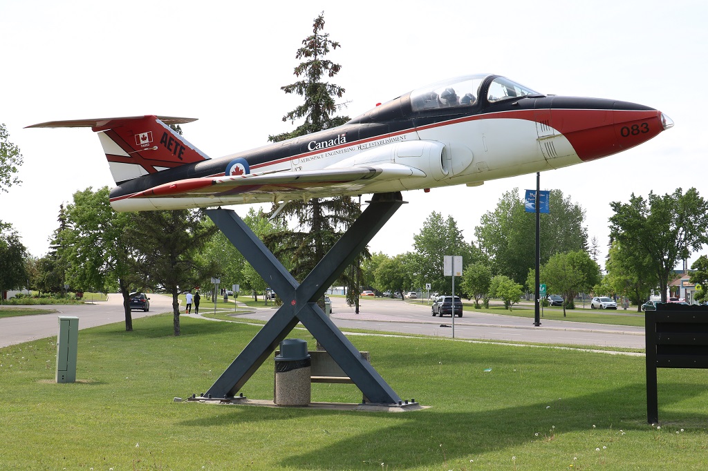 We left the base and headed to Cold Lake to find our hotel but made one more stop to see the two planes outside the Cold Lake Museum; which we plan to visit tomorrow. Both of these planes display a large red X on the tail which indicates that they were training aircraft.