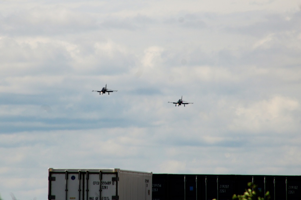 Earlier in the afternoon we had seen these two planes rise into the air together and as we were at the viewing area they came in to land together. They set down, one slightly behind the other, at the same time. Awesome flying to watch.