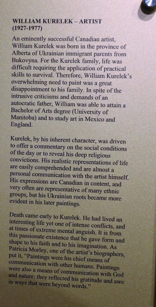 The second room featured twelve paintings of the life of early Ukrainian settlers to Canada that were commission from the artist William Kurelek by the Ukrainian Women’s League of Canada. I did not photograph any of them as they are original artwork and I am sure would be under copyright.