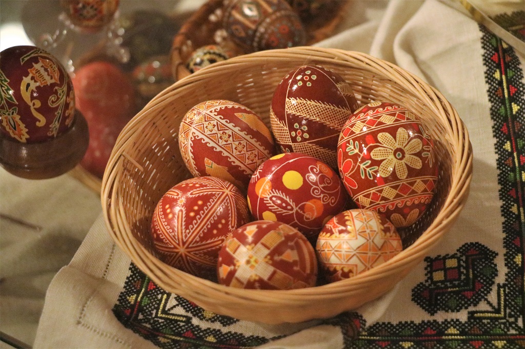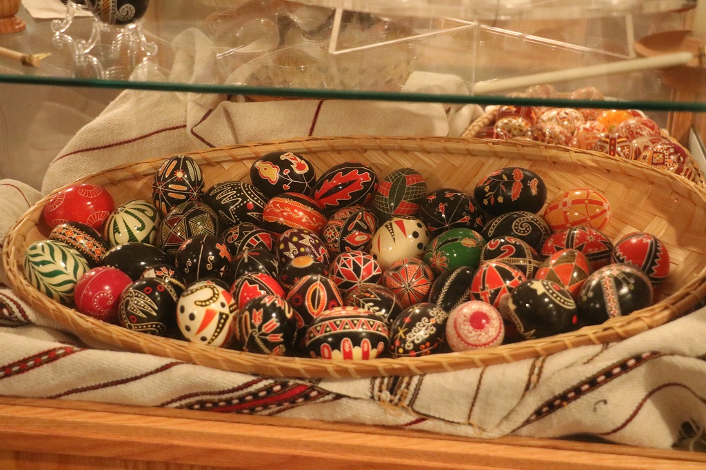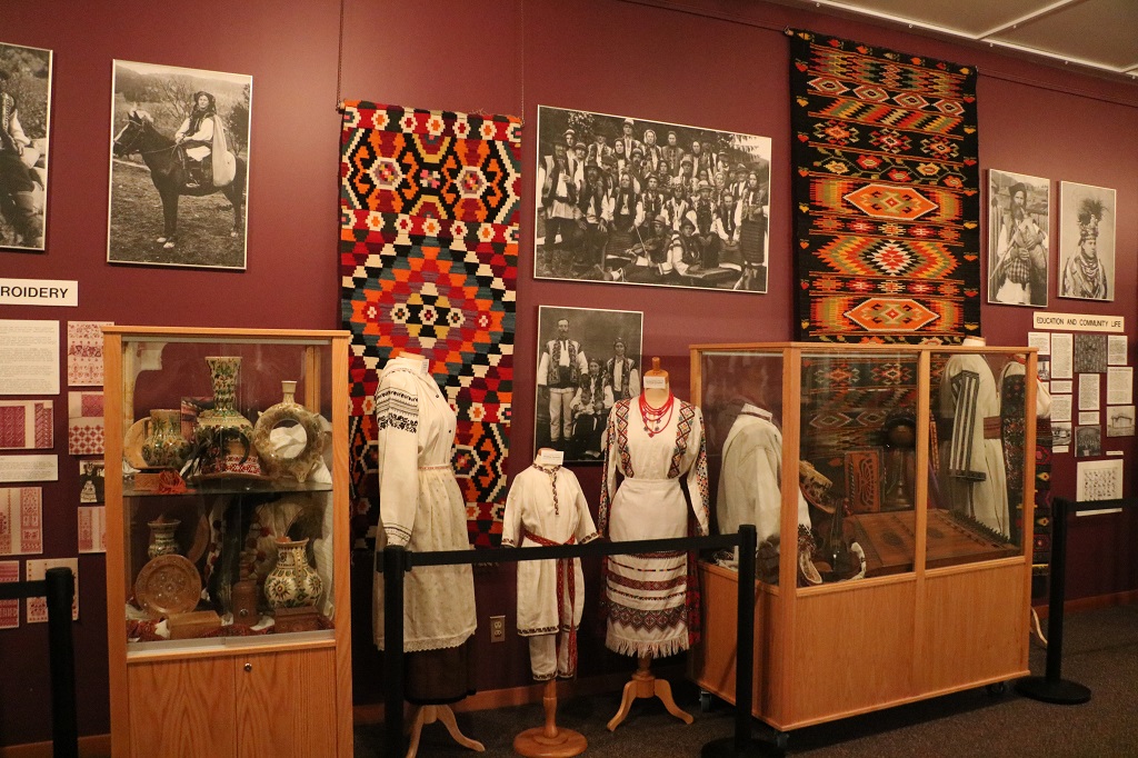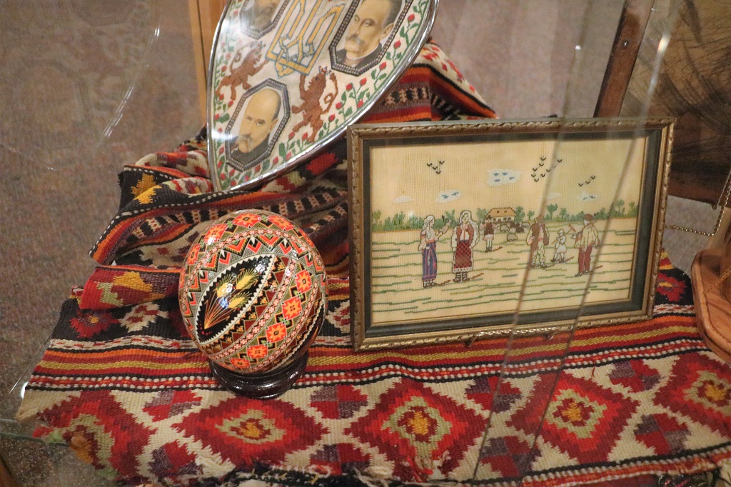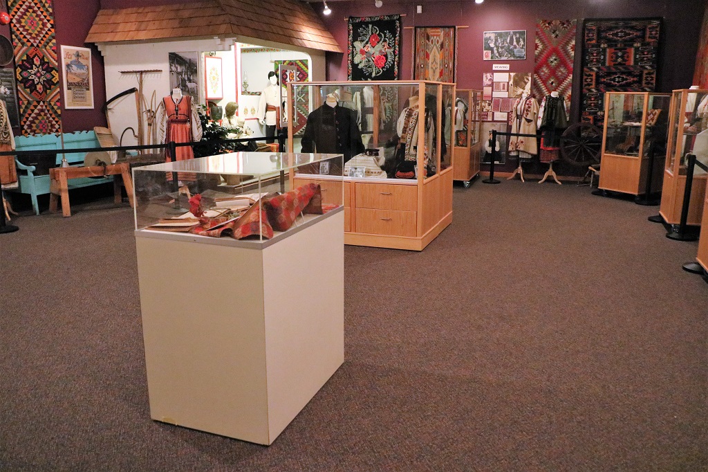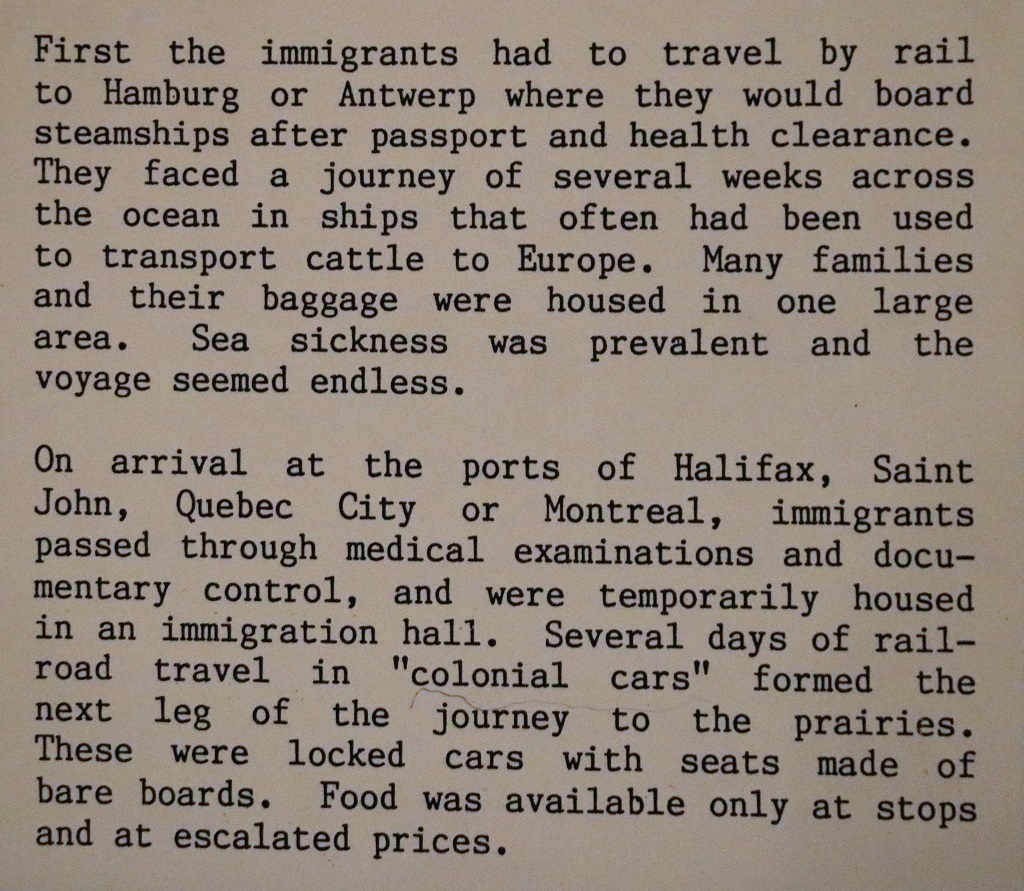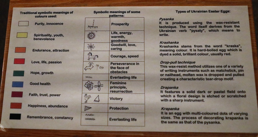 The third, and largest room, displayed gorgeous clothing, woodwork, carpets, Easter eggs (Pysanka) and other items made by some of the local or pioneer Ukrainian people. There were also a series of cards that told the immigrant story. I am only inserting the seven that tell the basics of the story for all the new immigants that came to Canada between 1892 and 1914.