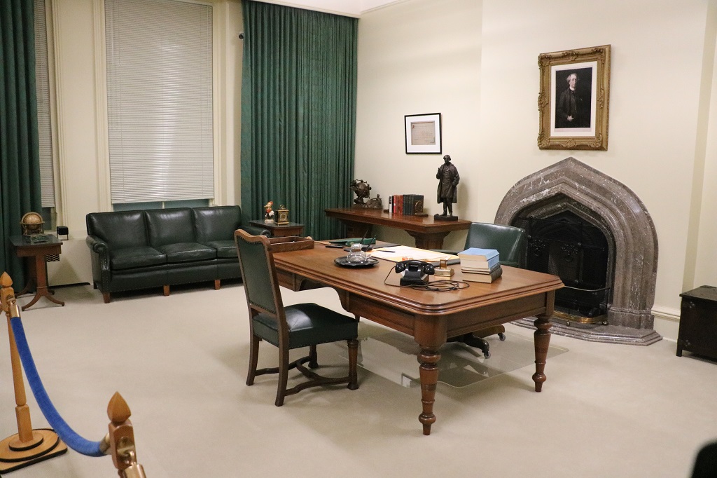 He set up the Diefenbaker Canada Center himself and bequeathed all of his souvenirs, letters, and journals to the University. This is a replica (or could be the original furnishings) from his office as Canada’s Prime Minister.