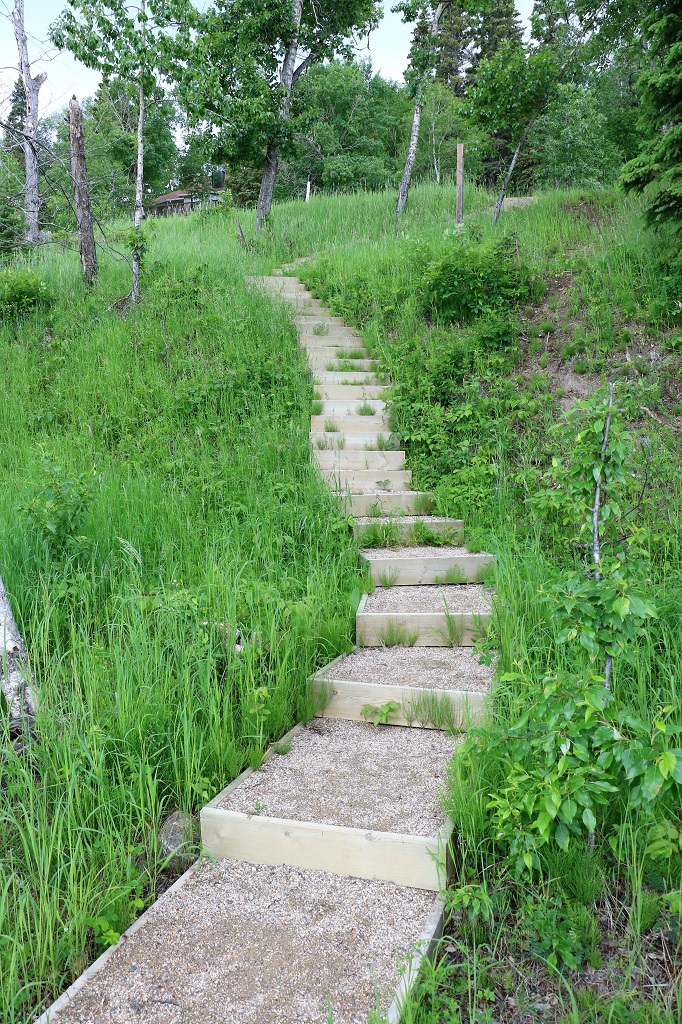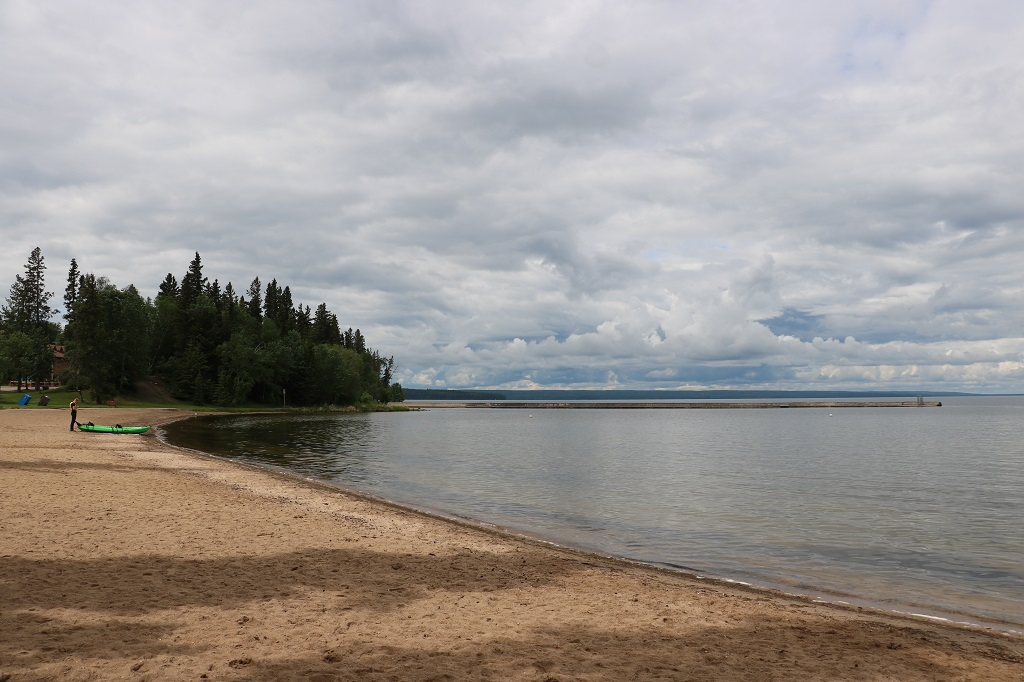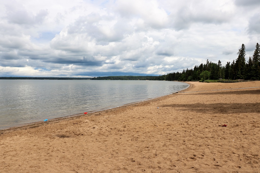 Our friend Nolan that we had visited in Saskatoon, and the lady at our hotel said we should go to Lake Wasekesiu which is in Prince Albert National Park about 90 km north of town. She said, “It’s like Banff, only without the mountains and the people.” Since we were just having a driving around day anyway we decided we may as well drive up there. Then I was looking at one of my map books again realized that on our way up to Prince Albert we had passed the Batouche Historic Site that I wanted to see. We were too late yesterday to stop anyway but today we would have time so we decided to backtrack after visiting Wasekesiu. Thus we instituted Plan C.