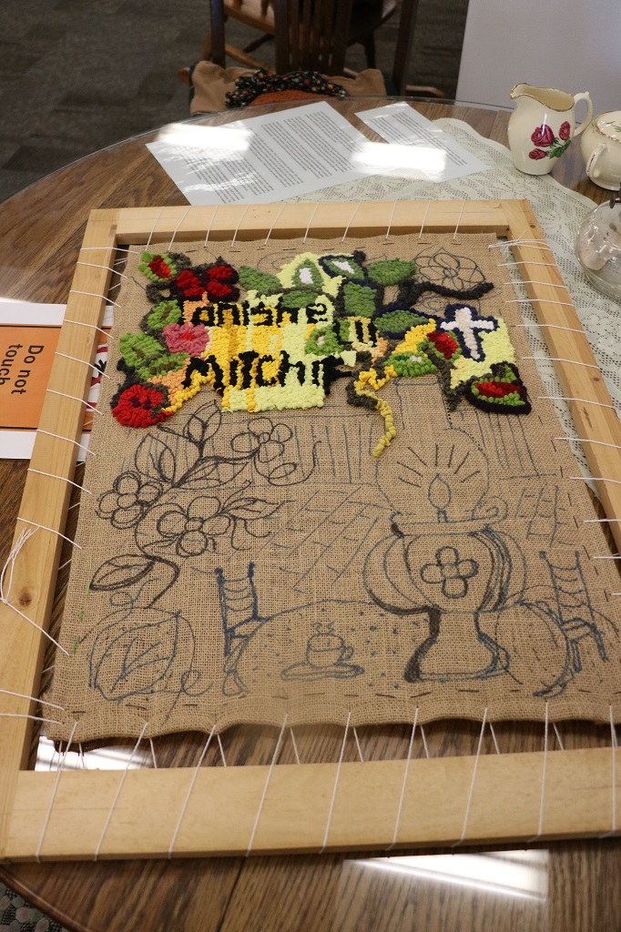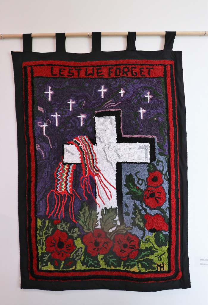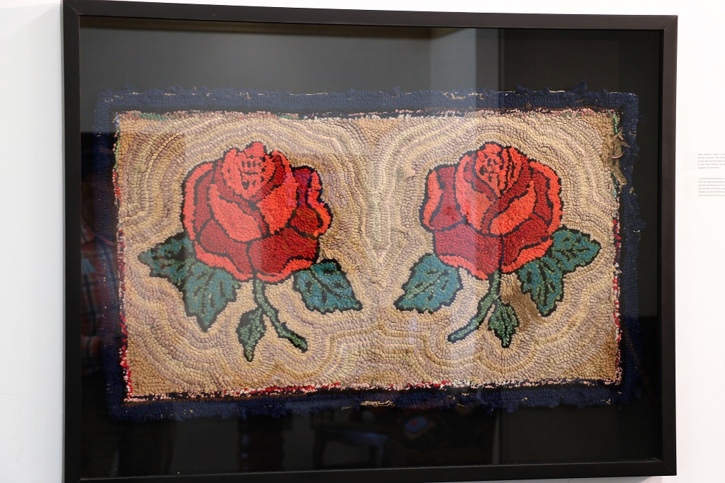 The art gallery showcased some lovely ‘rug’ art. My mother used to make little round floor mats like this but these were pieces of art. Someone must do a demonstration of the technique because there was a partially completed one on a table.