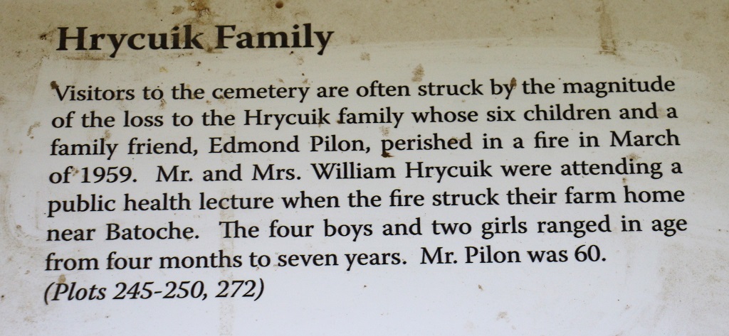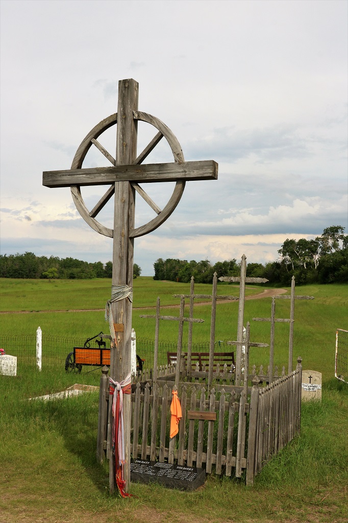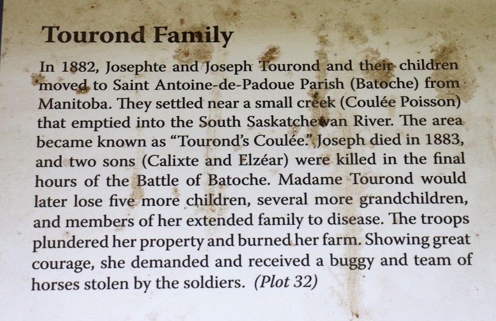 At the cemetery there was a little shed with information on a few of the families whose names you see often on graves. The cemetery is still used by local people or people with historic family ties to Batoche.