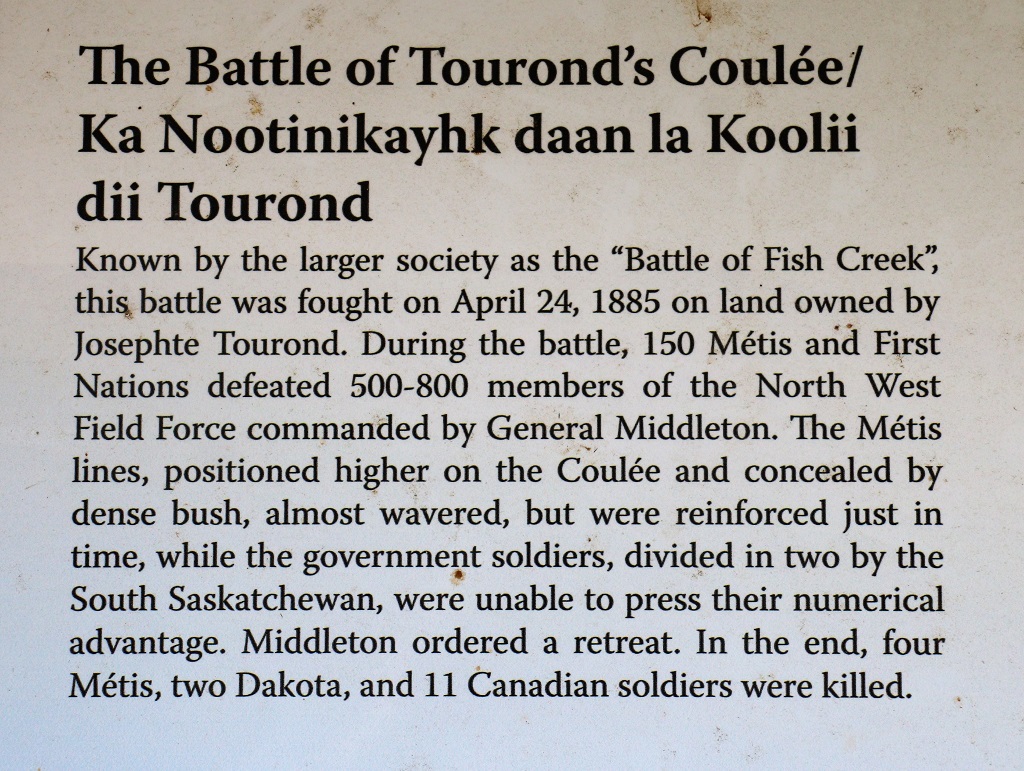 Batoche was a Metis trading and farming community and was also the sight of the final battle of the 1885 Rebellion. The Metis and First Nations people, under the leadership of Louis Riel, had been petitioning Ottawa for more equality from the Government in matters of land and other discriminatory laws. Sadly the issues came to armed conflict and remained unresolved for many, many years. Louis Riel was tried for treason and, although the jury recommended mercy, was executed by hanging.