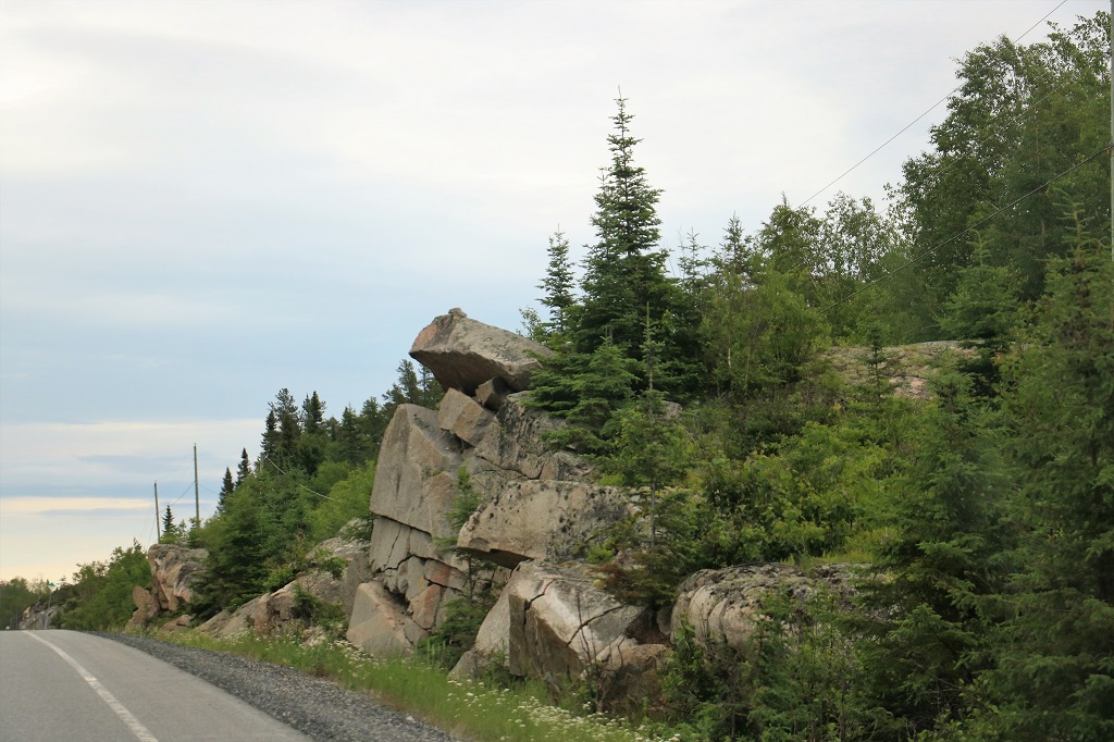 These are the sorts of rocks we drove past between ponds and lakes and forests of thin trees.