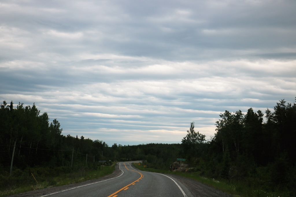 Not long after we were on the road again John said the trip odometer turned over to 5,000 km. We entered Ontario at 12:40.