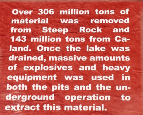 Iron ore was confirmed to be at the bottom of Steep Rock Lake in 1938. It wasn’t until near the end of WW II when there was a tremendous need for iron for the US and Canadian war effort that a plan was made to access it.