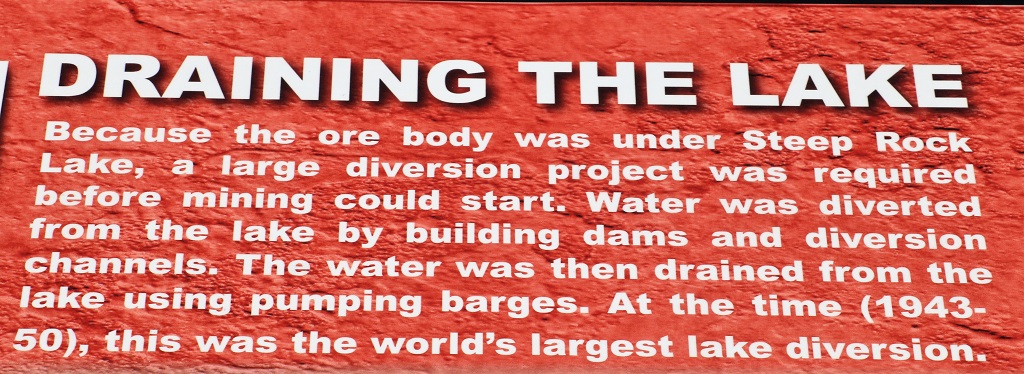 Iron ore was confirmed to be at the bottom of Steep Rock Lake in 1938. It wasn’t until near the end of WW II when there was a tremendous need for iron for the US and Canadian war effort that a plan was made to access it.