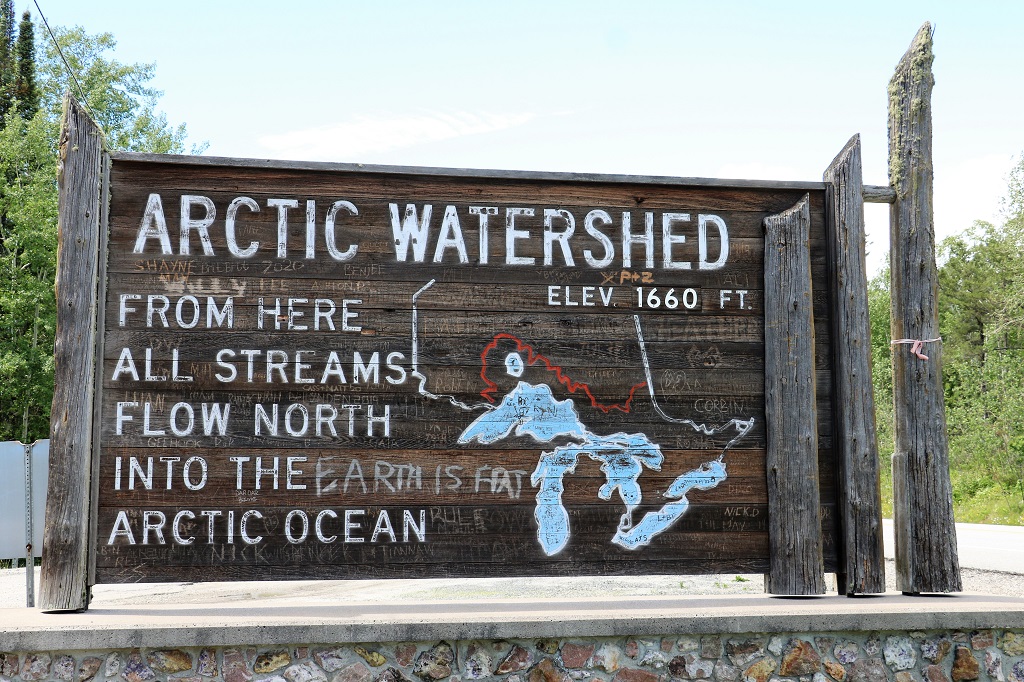 We found a store that sold ice cream and enjoyed a cone before heading back to the highway and east toward Thunder Bay. About 60 or so kilometers from Thunder Bay we crosssed the Laurentian Divide, also called the Northern Divide. From this point all water either flows to the Arctic Ocean or to the Atlantic Ocean.