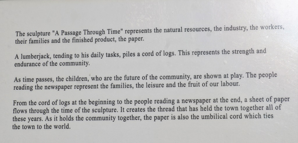 This tall memorial stands to commemorate the death of three pulp mill workers who were on strike here in 1963. Independent contractors crossed the picket lines and provided logs to the pulp mills. Over 400 pulp mill workers heard about a secret shipment of logs going to the mill and went to prevent it. The contractors shot at them. Three died and 8 were wounded. 20 of the contractors were charged with murder. It was the most violent labour strike in Canadian history.
