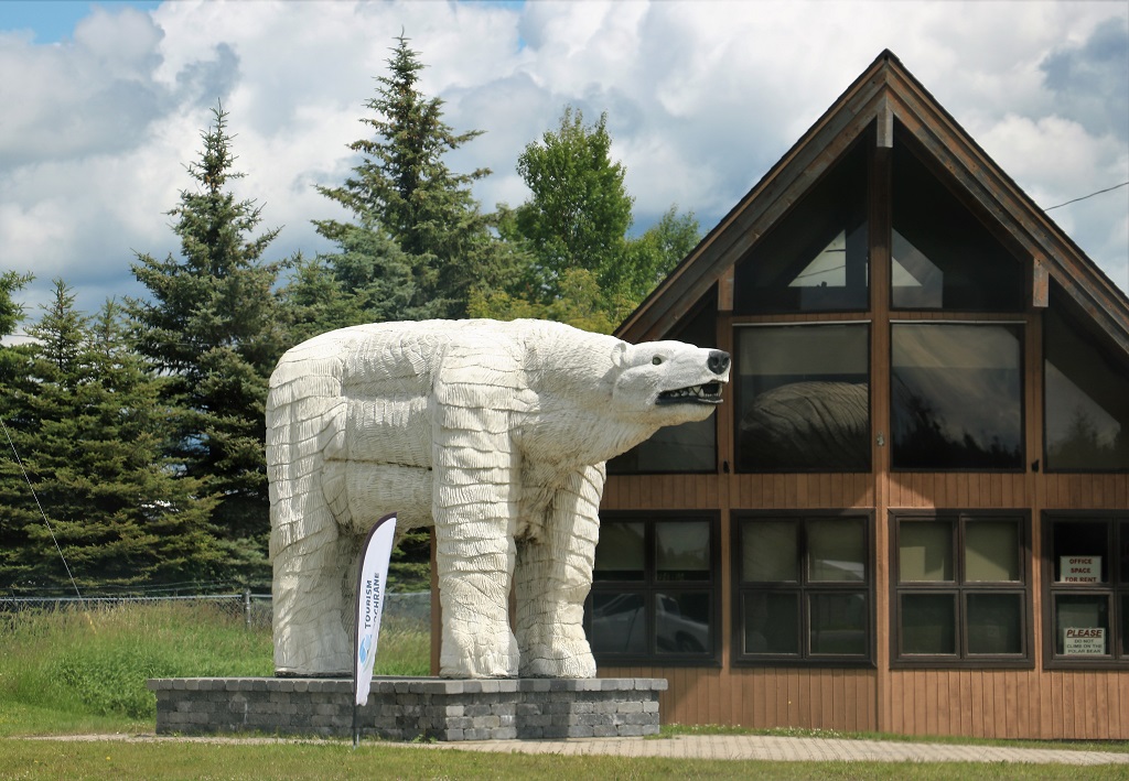We left Hearst at our normal 10ish and made several quick photo stops before we got to Cochrane. We were doing an Adventure Lab geocache that is part of a series being set up along the full length of the Trans-Canada Highway. Adventure Labs are a new add-on to the regular geocache hunt, but they do no have a log paper to sign; instead, as you approach each part of the Adventure Lab, your phone will display a question, the answer to which is on signs or plaques at your location. Most Adventure Labs take you around towns to point out the points of interest. The Trans-Canada Highway project has select points of interest along sections of the highway that eventually will all be connected into one long hunt. Most of the TCH labs are about 10 stops. We enjoyed being directed to memorials, or town mascots or advertising displays. The Labs are quick and fun and you see many things you would never otherwise notice as you drive along.