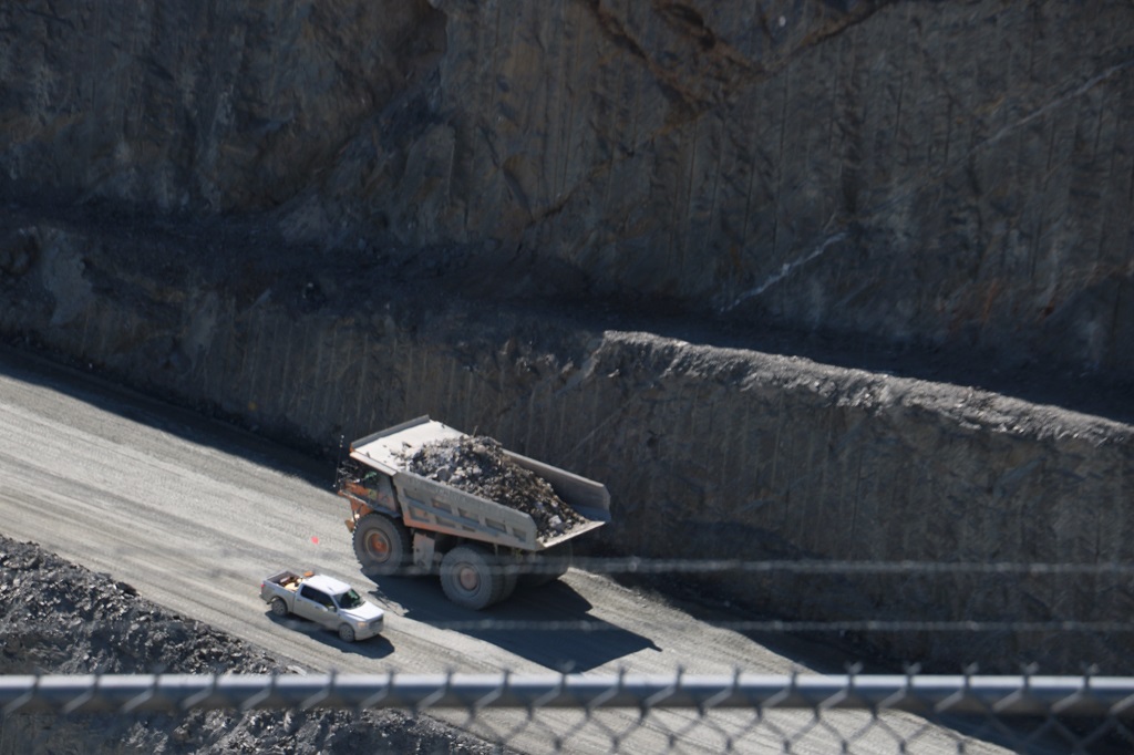 This truck is about half way out of the pit they are currently working so this picture gives an idea of how deep they are. We could just see the edge of a deeper one right below the viewing area.