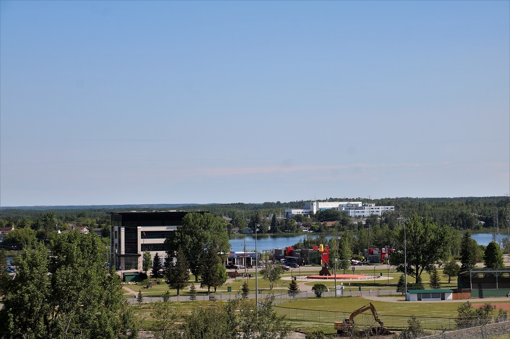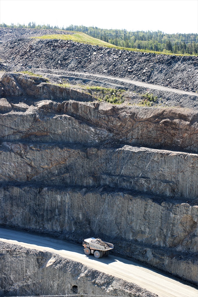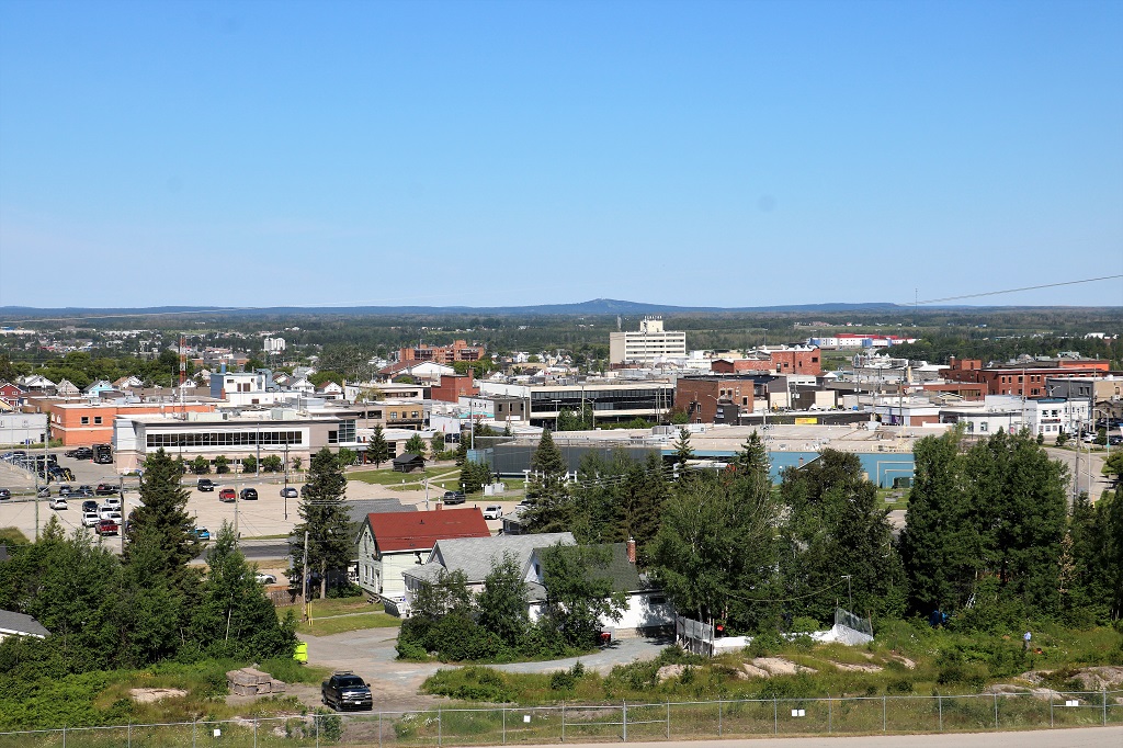 We actually did not leave Timmins at our normal 10ish. Instead we took a drive to the new viewpoint that opened last week. It was built by the mining company that has a 15-year deal to work the open pit gold mine that has been closed for a number of years. They built a lovely three-level, wheelchair accessible viewing area with nice metal fencing, benches and picnic tables. Since it is brand new lots of local people were up there last night to watch the sunset and this morning to see the view over Timmins and watch the work in the mine. There are security guards that come up whenever they are going to do blasting (usually at 11 AM and 3 PM) and clear the area so there is no risk of anyone getting injured by flying rocks.