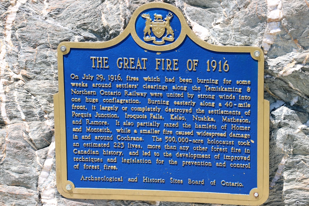 This first stop in Matheson was due to an historical sign on the highway directing us to this marker down by the Black River where there was a nice picnic area and park.