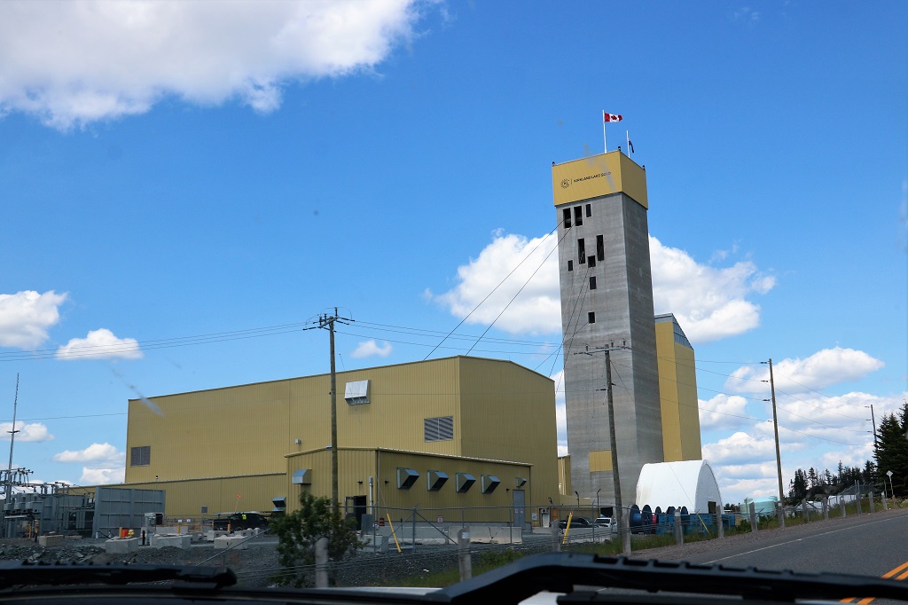 This is the head frame for the Kirkland Lake Gold mine. It is basically a massive elevator shaft. All the ore is brought to the surface with it, miners, equipment and water and anything else needed can go down in it. There are about five wires we can see on this one and each wire is a different lift.