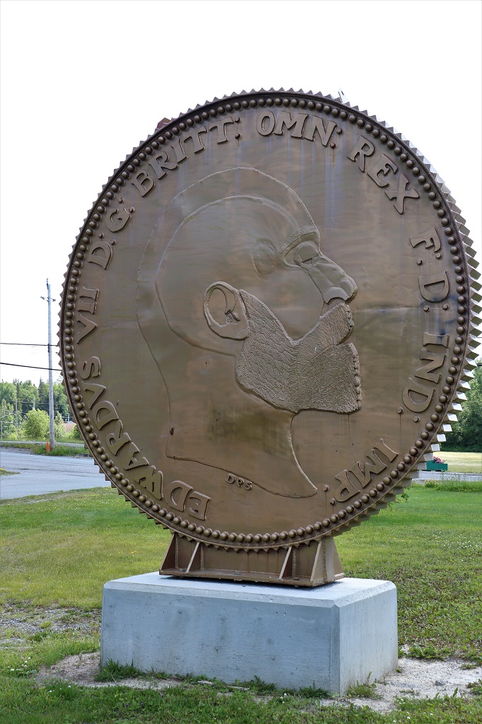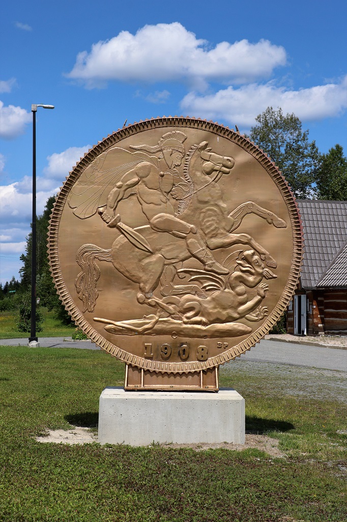 We had a nice chat and visit with the two young women at the Virginiatown Visitor’s Center. Gold from the nearby Dr. Reddick Larder Lake Mine was bought by the newly formed Royal Canadian Mint in 1907 and used to mint the first $5.00 gold coin in Canada. The front of the coin features St. George and the Dragon and the back has the portrait of King Edward the VII.