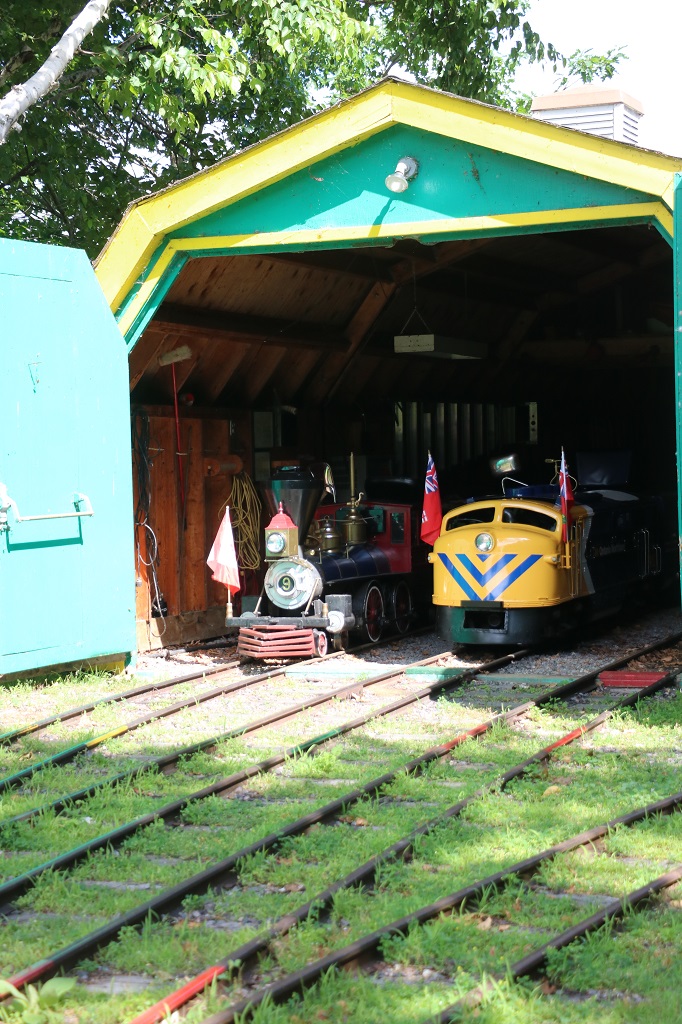 They use a diesel engine to pull the train. Replacement cost would be $450,000. They also have in this shed an eletric engine and a gas engine. The train and the carousel are operated and maintained completely by volunteers.