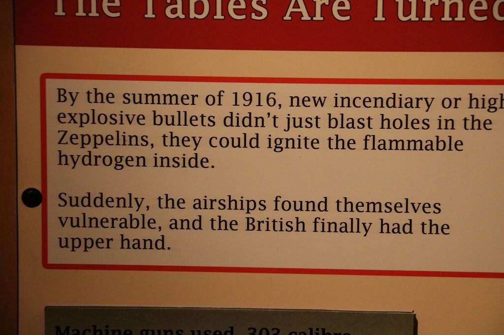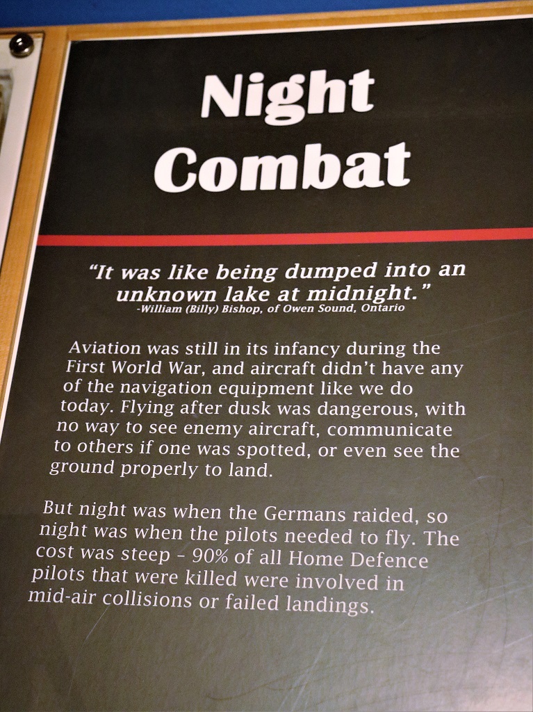 I have heard so much about the WWII Battle of Britain with the German bombing night after night that I forgot that the Germans also sent huge zepplins across the English Channel to bomb Britain in WWI. The British did not even have an air force at the time. But in a very few months after declaring war on Germany they did. Many pilots were from Canada, and half of the takedowns of 12 of Germany’s big Zepplins were done by Canadians; some with British crew.