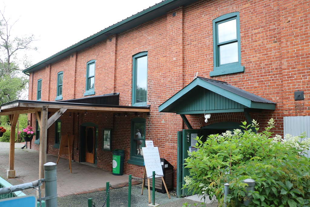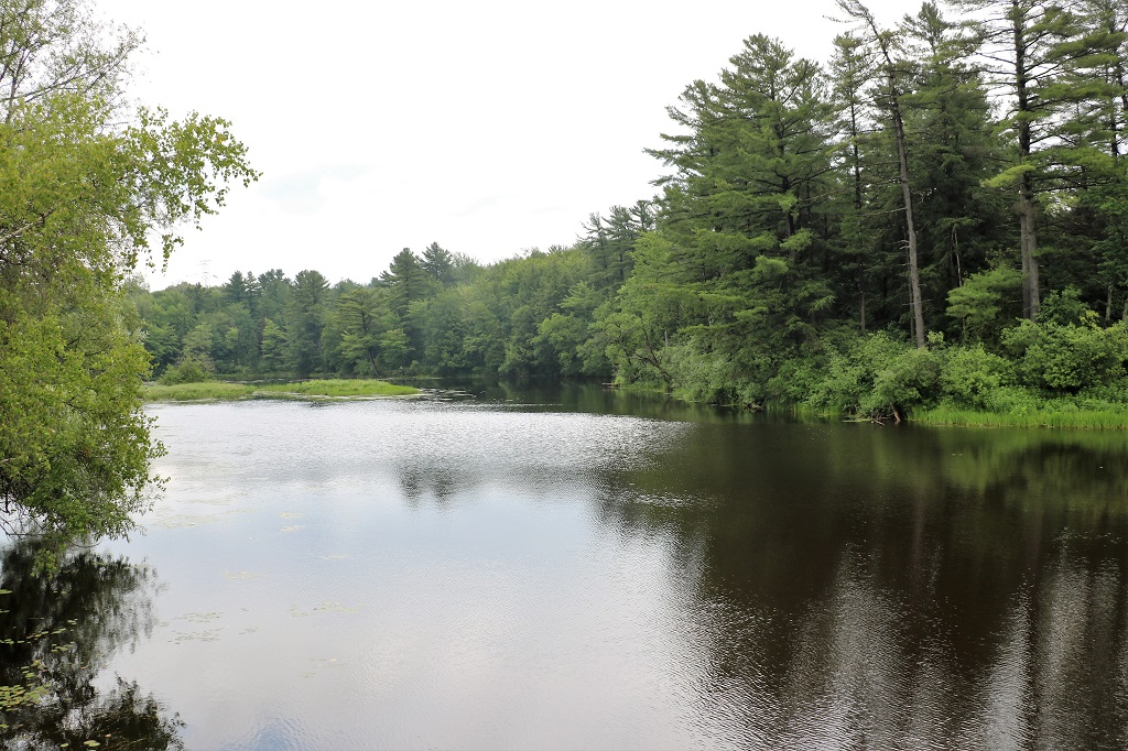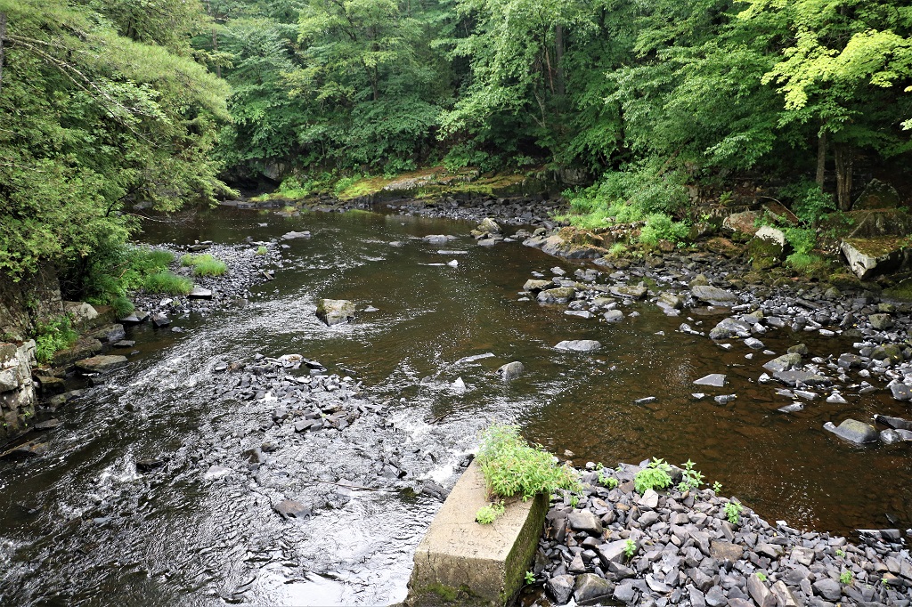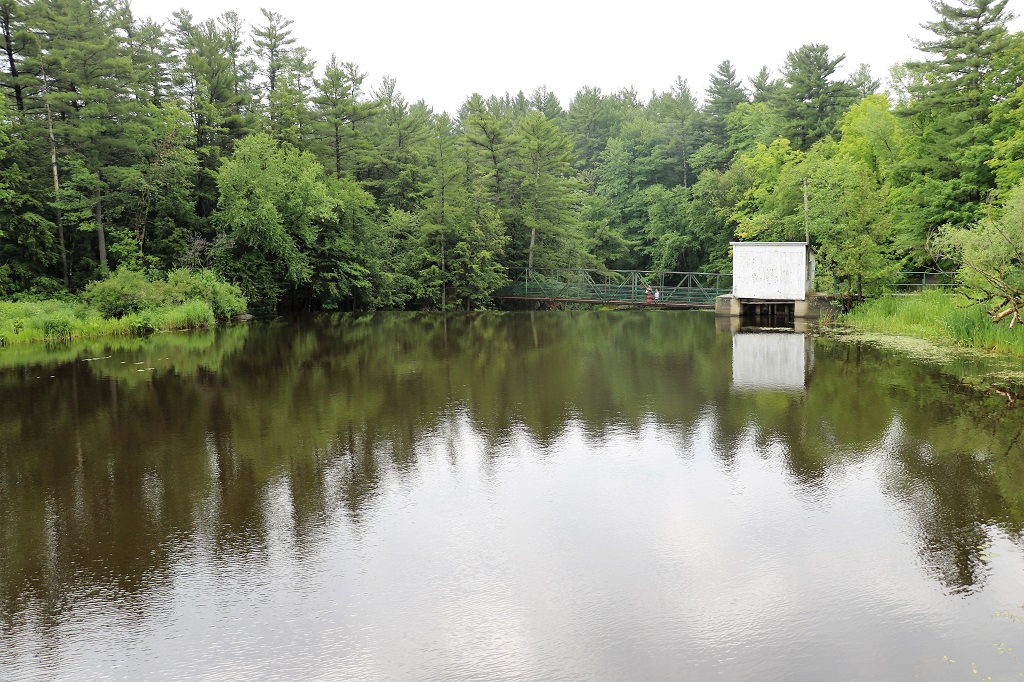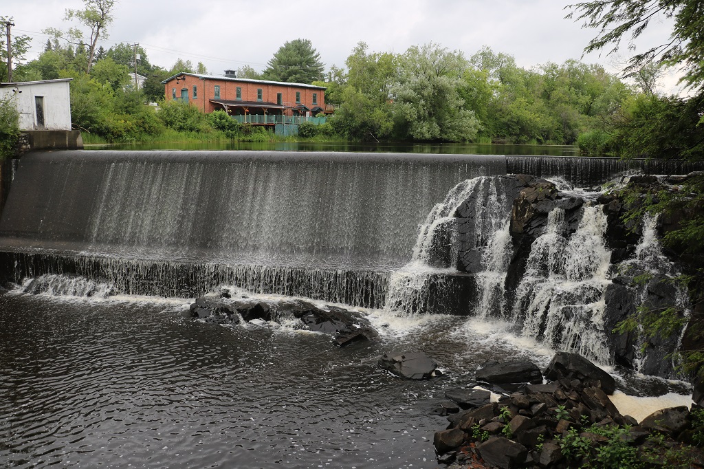 We drove north of Sherbrooke first to the town of Windsor where there was a building still surviving from an old powder mill – as in black powder for explosions and guns. I was hoping there would be information plaques or a brochure available but there was only the empty building. The property is now a popular hiking area and the lady at the desk just collects a fee to use the trails. She let us in for half price because we only wanted to walk down to the bridge that we could see from the mill building.