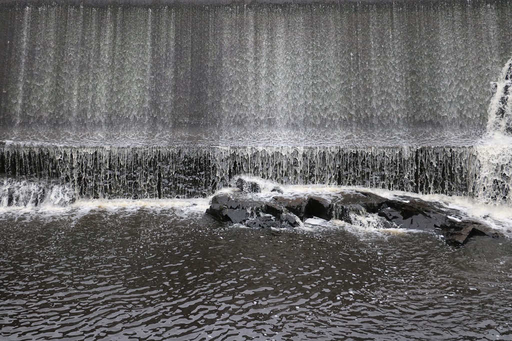 Look closely at the picture above. You can just make out a smooth water line a tiny bit below the bridge. It is like the edge of an infinity pool, completely straight, no ripples or waves. This is because there is a sloped concrete wall for the water to flow over which creates a smooth waterfall.
