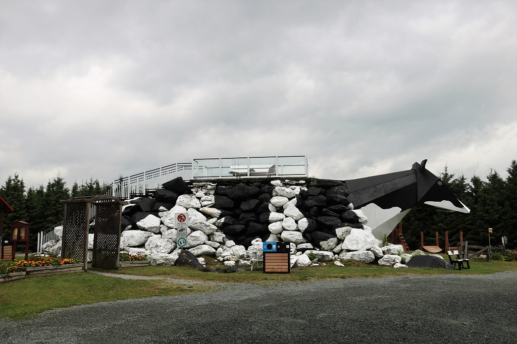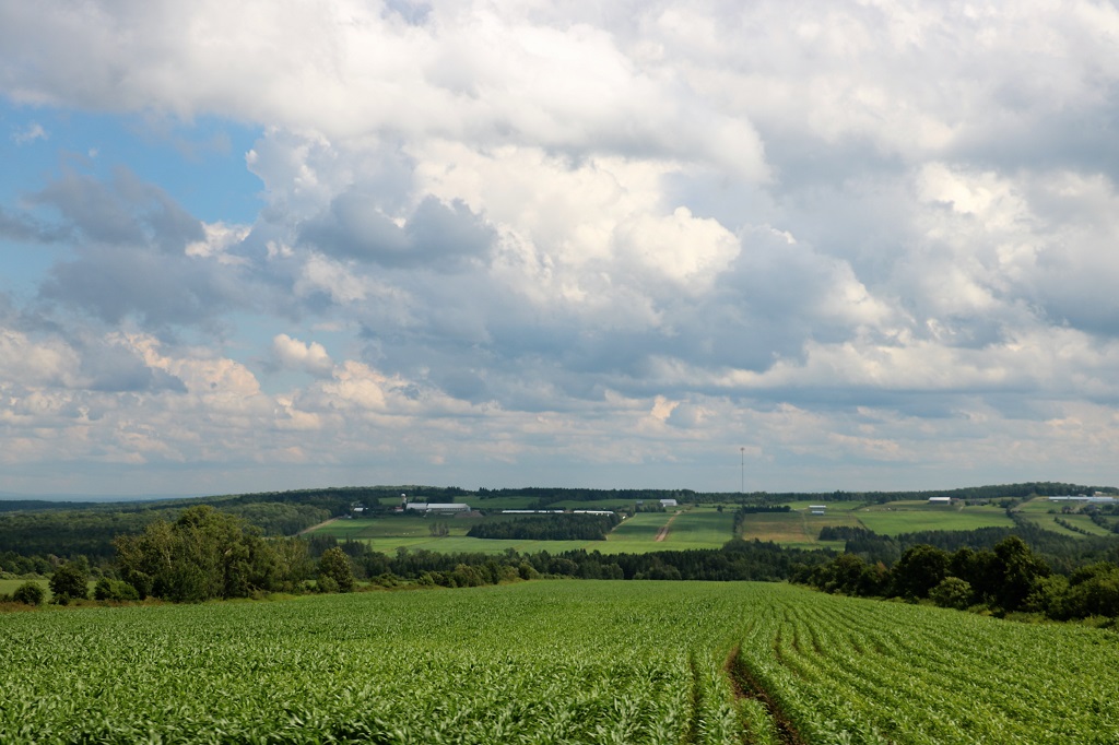 We saw a sign indicating there was a viewpoint a kilometer up the road so we pulled in even though the sky was low and we did not expect to see far. We had been driving through rain since leaving Sherbrooke and even though it had stopped the clouds had not risen much.