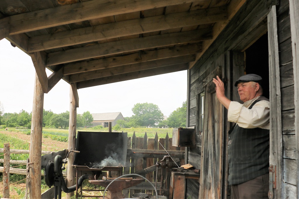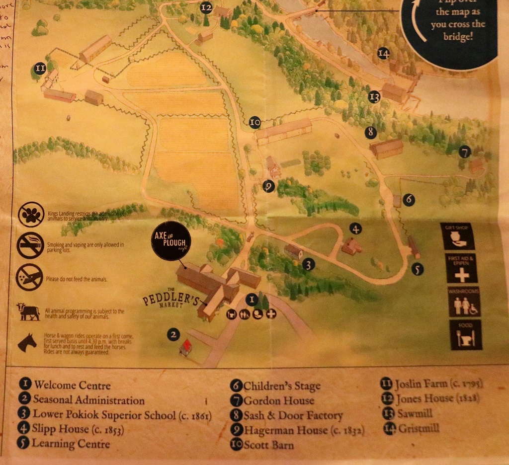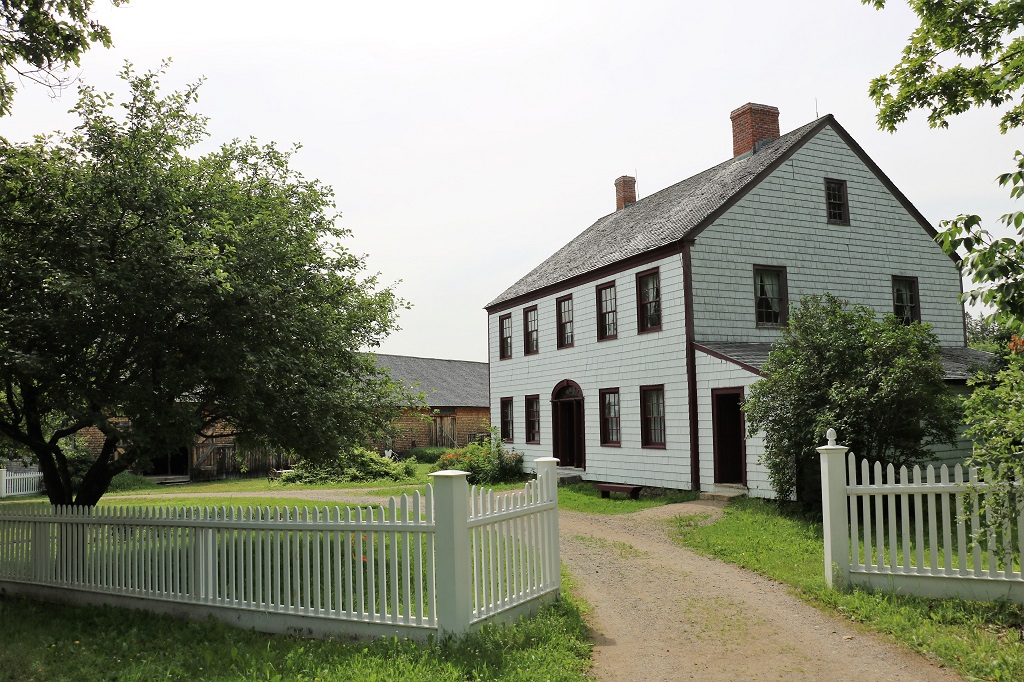 Before we headed to St. John this morning we went over to King’s Landing, which is SW of Fredericton. King’s Landing is situated along the Wolastoq (St. John River), and is a 300-acre museum that is home to over 70,000 artefacts and full of costumed characters, farm animals and 70 historic buildings. The museum opens in June each year and closes at Thanksgiving. It is open Wednesday to Sunday from 10 to 5. Over 100 people are employed to keep the village running, about half of them play the roles of the people that had the businesses, like the blacksmith, or lived in the homes. They speak as if it is about 1860 and will tell you about ‘their’ family that lived in each of the buildings.