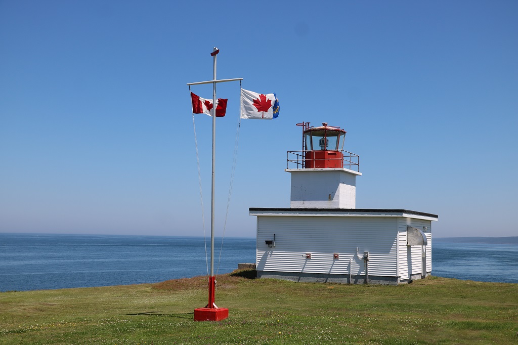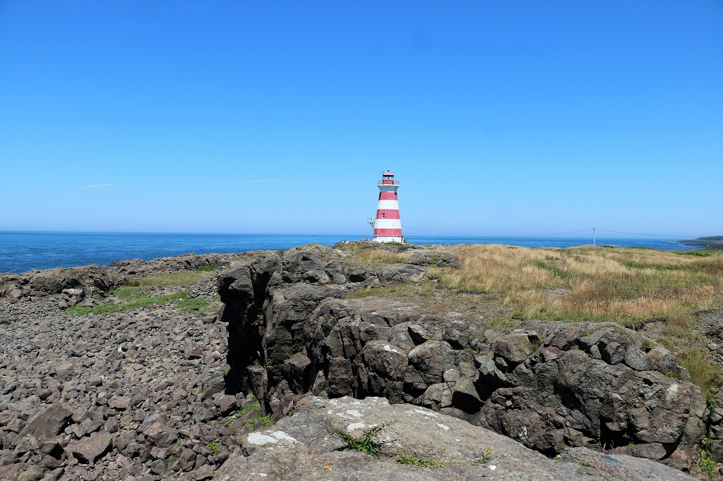 Since Bier Island is the most westerly point of Nova Scotia and juts into the Bay of Fundy with a very rocky coastline there are three lighthouses on it. One on the north, one on the west and one on the south. This is the Western Light. At this point the Bay of Fundy officially begins to the right and the water to the left is the Gulf of Maine. It is the third oldest lighthouse in Nova Scotia and still operational through a fully automated system. This is also a popular sunset watching spot.