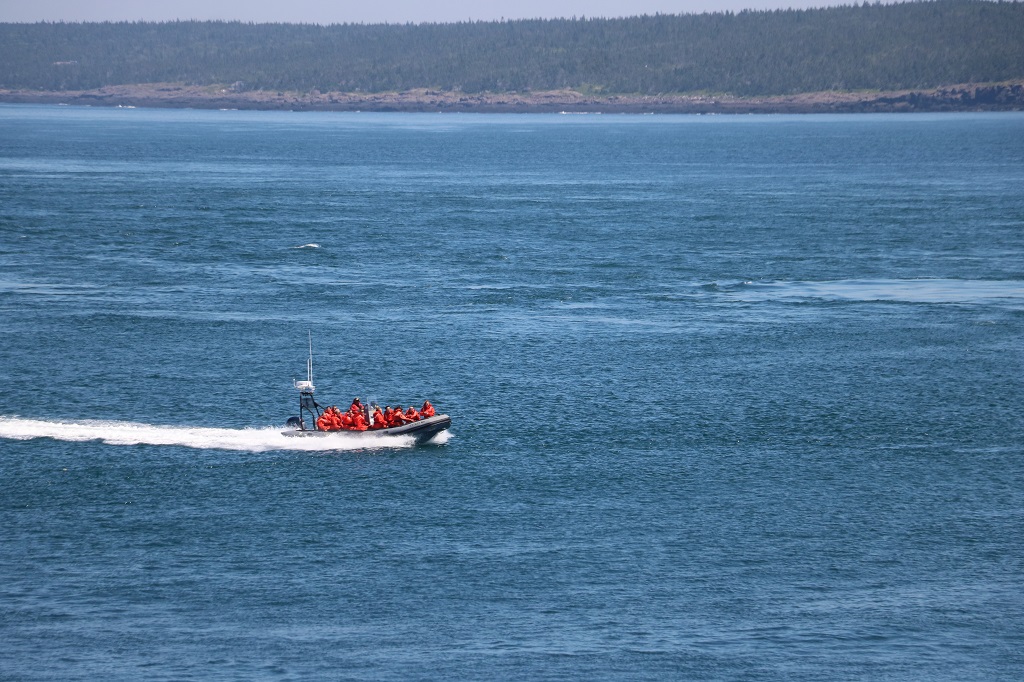On our way back to the town of Westport we saw one of the whale watching zodiaks heading back from a tour. Everyone is wearing full-body survival suits for protection from the frigid water in the event anyone falls overboard.