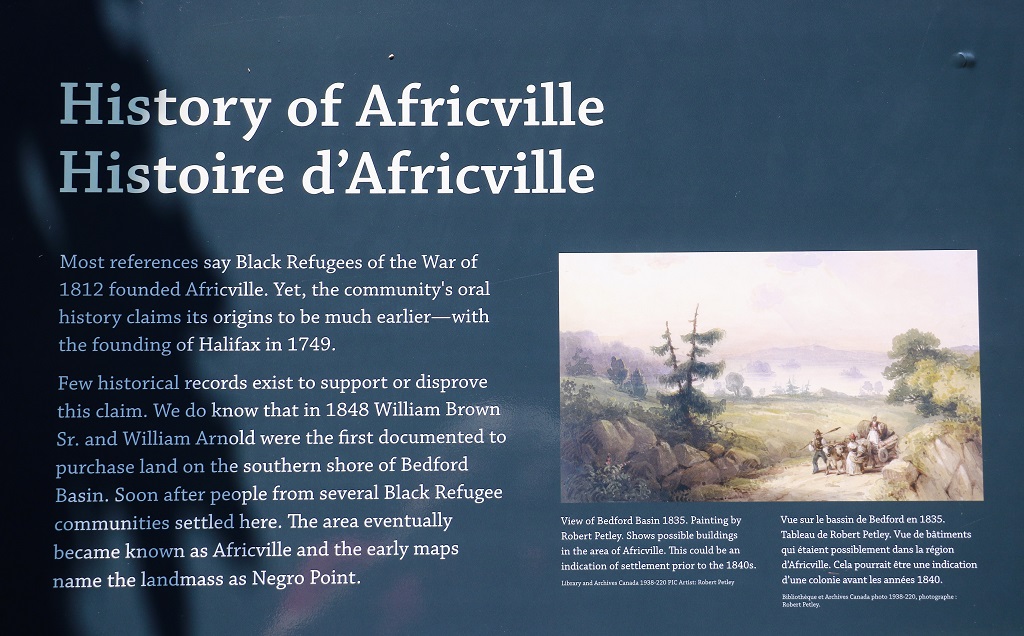 We had heard a sad tale about a community called Africville that was destroyed by the city of Halifax in 1964 to make way for industrialization along the shore of Bedford Bay. It wasn’t too far from the Immigration Center so we went to check it out.