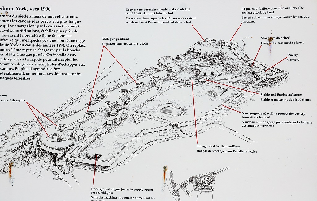 By 1867, when Canada was born, technology was changing rapidly. Warships were now built of iron, rather than wood, and protected by thick armour which cannon could not penetrate. New guns firing heavier, pointed shells were built to pierce armour plate. York Redoubt was rebuilt and expanded to mount the new guns.