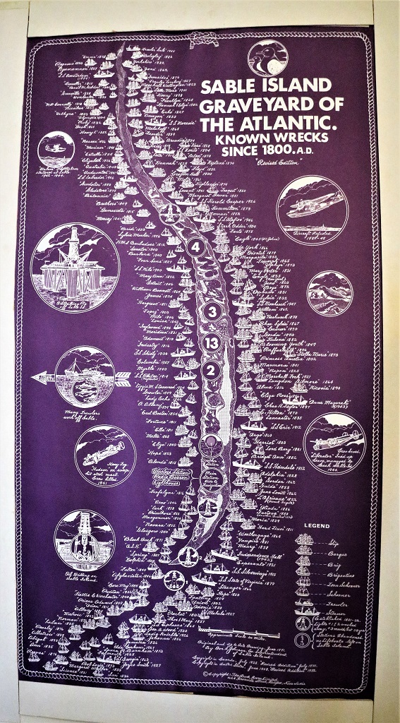 This poster was hanging in the entry hall and I am amazed at the number of shipwrecks that have occured around Sable Island. I knew it was a very flat, low island and a shipping hazard, but had no idea it was responsible for this many wrecks.
