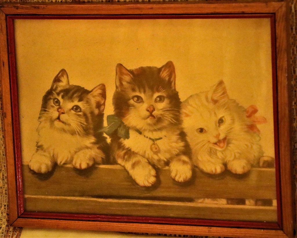 Upstairs in one of the bedrooms this picture was propped on a chair. I had the same one hanging on my bedroom wall as a child. I may still have it in a box in my attic. We also had one with three puppies on it.