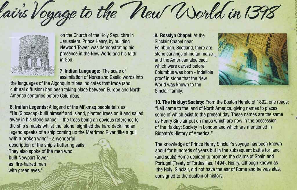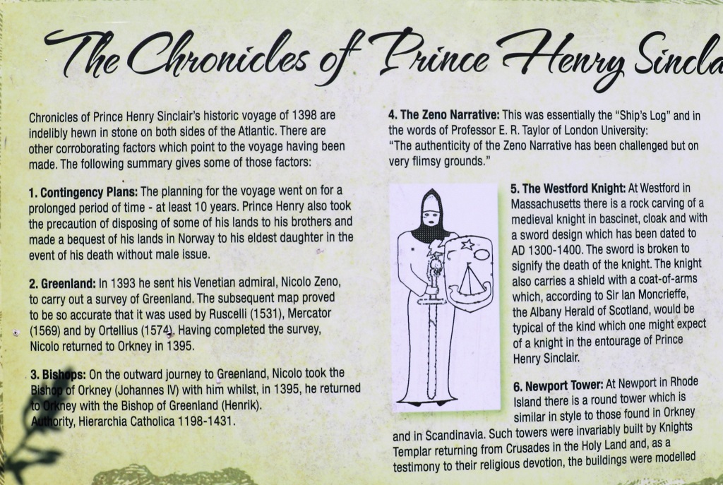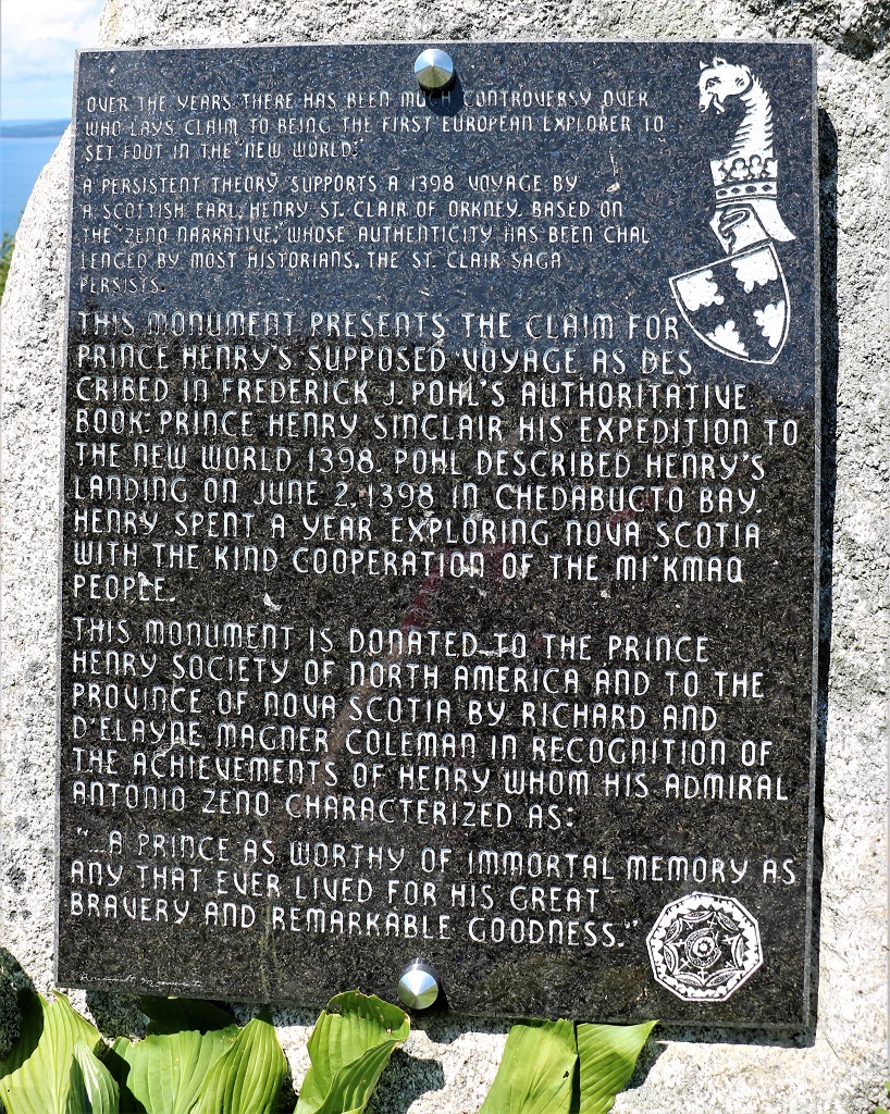There was a pull-out along the road that had several plaques so we went in to see what they were about. Apparently, according to the Prince Henry Society of North America, Columbus did not ‘discover’ America. Prince Henry Sinclair did – and a hundred years earlier.