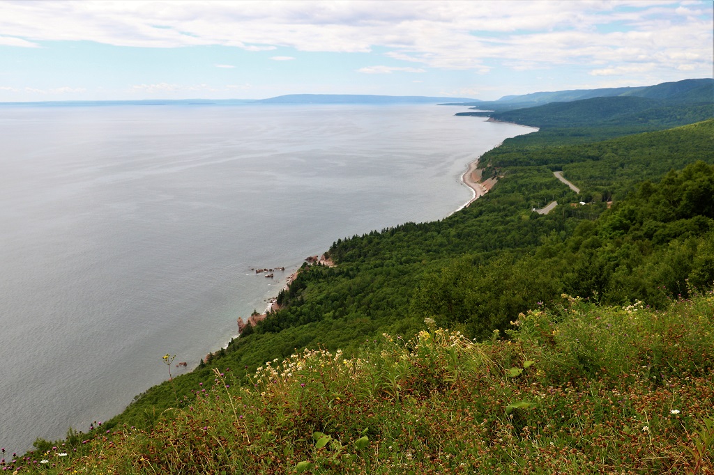 Cape Breton Island is connected to the Nova Scotia mainland by the Canso Causeway. The island is 10,311 km². 20% of the island, or 950 sq km², comprises the Cape Breton Highland National Park, which was established in 1936. The 298 km Cabot Trail encircles the island and takes about 5 hours to drive due to the two lane road with no passing lanes, many, many curves and lots and lots of going up and down VERY steep hills, not to mention all the ‘must see’ viewpoints.