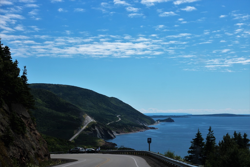 It is best to travel the Trail counter-clockwise because all the lookouts are on the right. You will constantly be having to cross traffic if you go the other way. And there is lots of traffic in the summer time. The Cabot Trail is world famous as a spectacularly scenic drive. Going up the east side is not so pretty as it is mostly trees with a couple of viewpoints and occasional breaks to see water. But once you get to the top and start down the west side it is breathtaking, with places to stop one right after another.