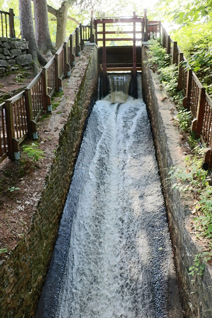 The old waterwheel flume looking down.