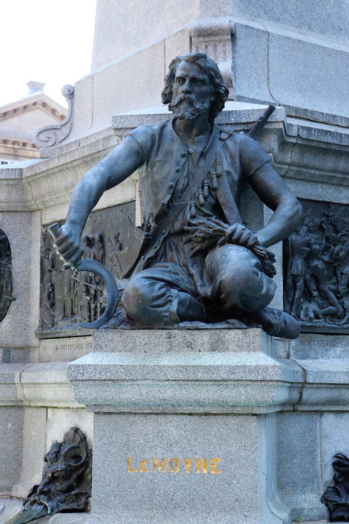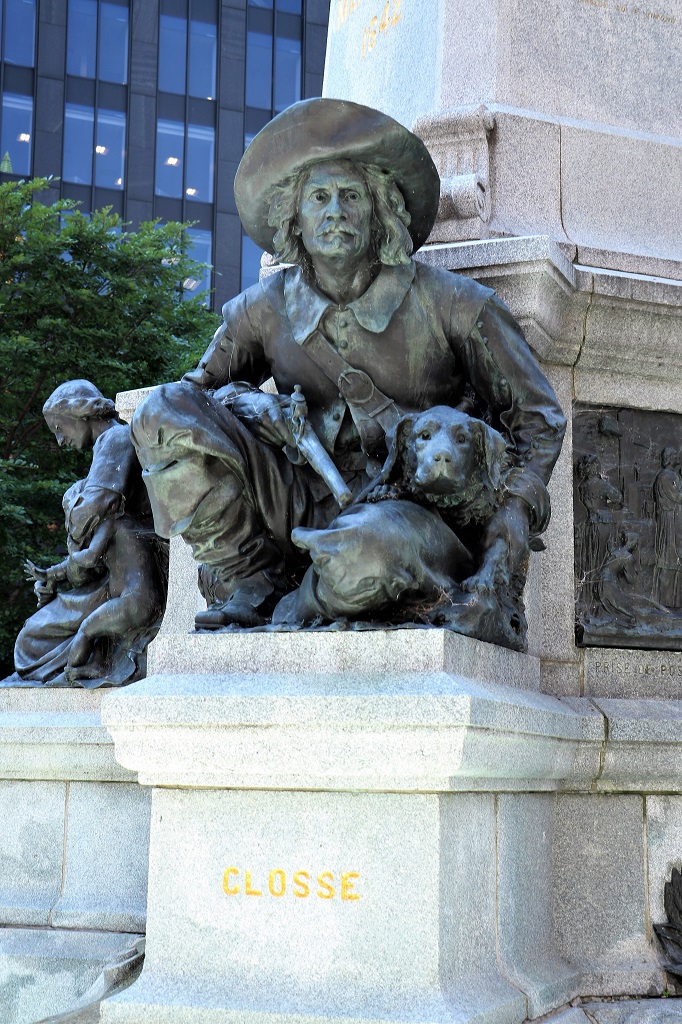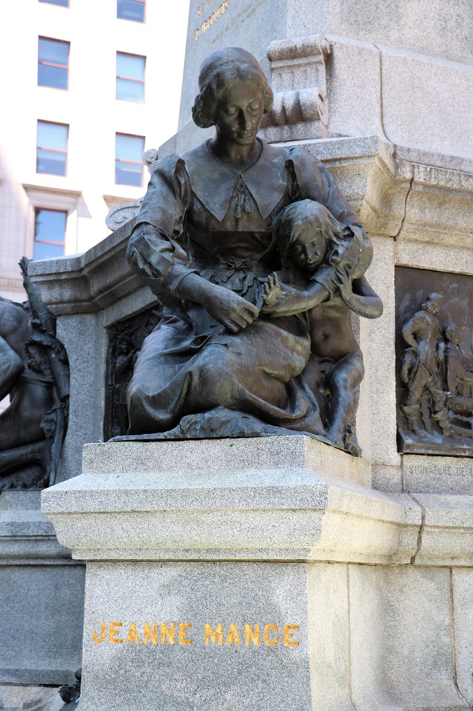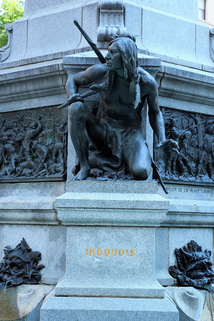 Around the base of the statue on Maisonneuve, the founder of Montreal that I posted a photo of yesterday, are sculptures of four other prominent persons/peoples in the history of the city.